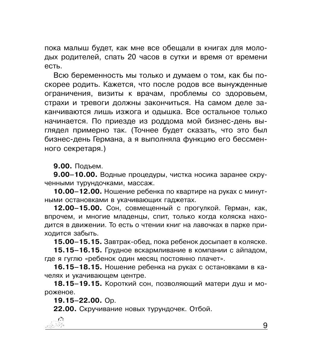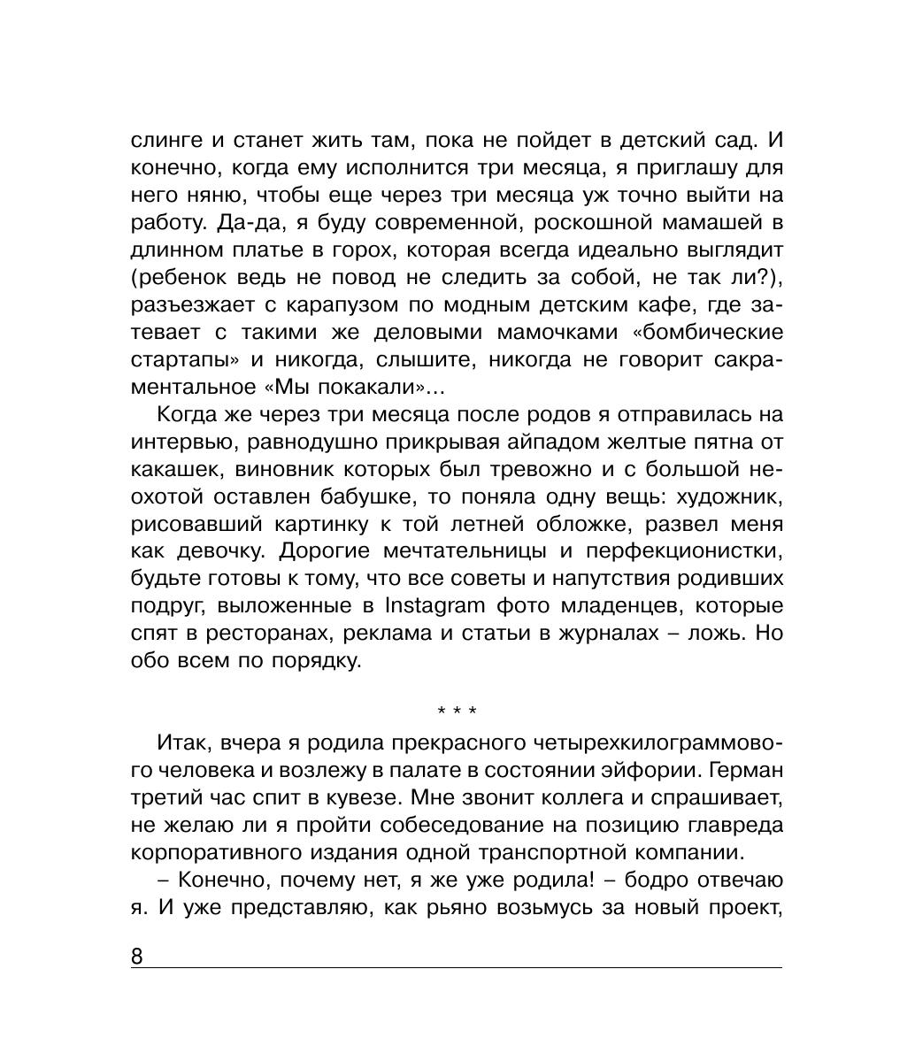 Книга написана легко, с юмором и показана к прочтению всем женщинам, которые планируют стать мамами или уже ими стали. А также папам и бабушкам, которые часто забывают, что ребенок — это не только радость и гордость, но и маленькая катастрофа.