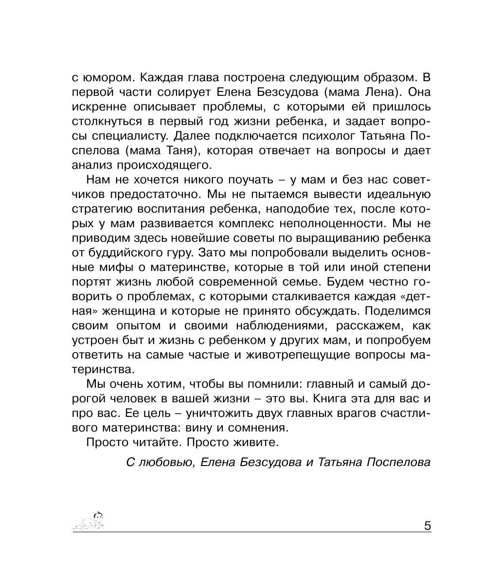 Авторы книги — молодые мамы, журналист и консультирующий психолог, пытаются честно разобраться в том, что тревожит сегодняшних женщин, впервые ставших мамами. Они пишут о том, можно ли совмещать работу и материнство, об эмоциональном выгорании и послеродовой депрессии, о раннем развитии и прочих волнующих нынешних мам проблемах и попутно развеивают основные заблуждения, касающиеся жизни малыша и мамы.