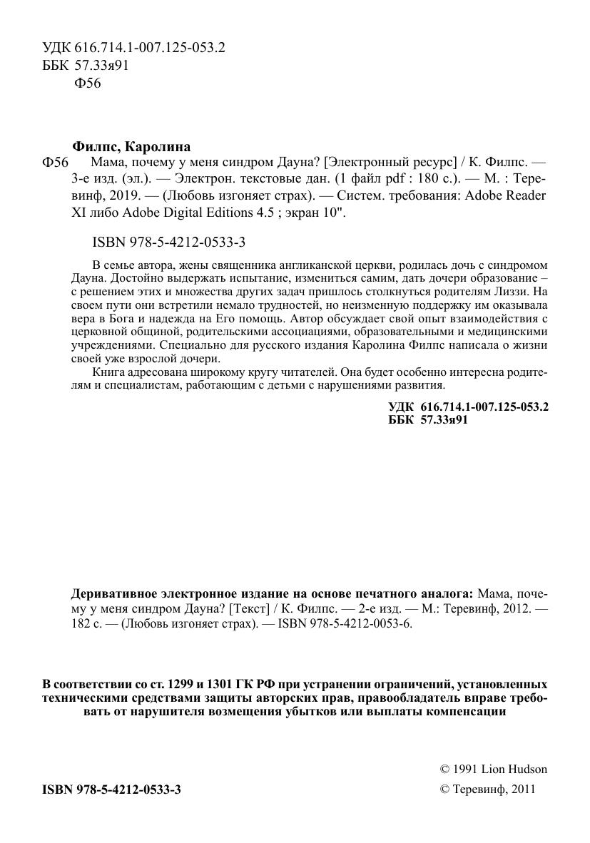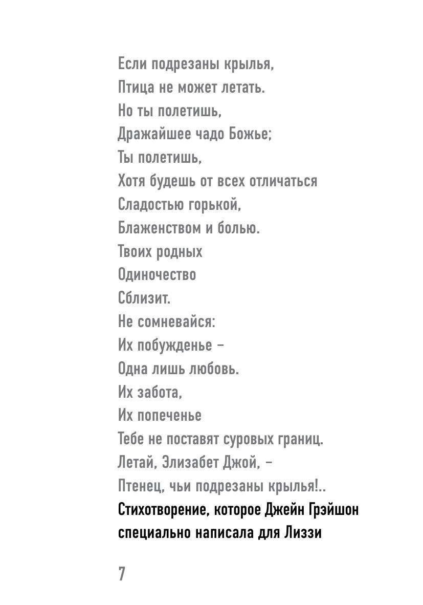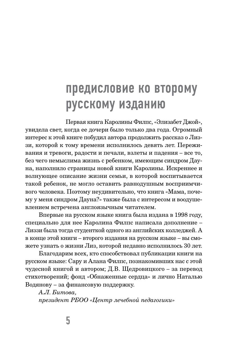 В семье автора, жены священника англиканской церкви, родилась дочь с синдромом Дауна. Достойно выдержать испытание, измениться самим, дать дочери образование — с решением этих и множества других задач пришлось столкнуться родителям Лиззи. На своем пути они встретили немало трудностей, но неизменную поддержку им оказывала вера в Бога и надежда на Его помощь. Автор обсуждает свой опыт взаимодействия с церковной общиной, родительскими ассоциациями, образовательными и медицинскими учреждениями. Специально для русского издания Каролина Филпс написала о жизни уже взрослой дочери. Книга адресована широкому кругу читателей. Она будет особенно интересна родителям и специалистам, работающим с детьми с нарушениями развития.