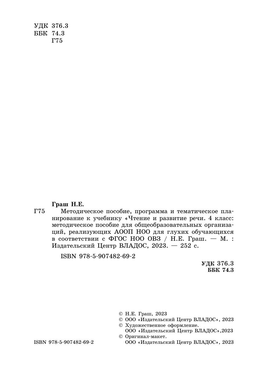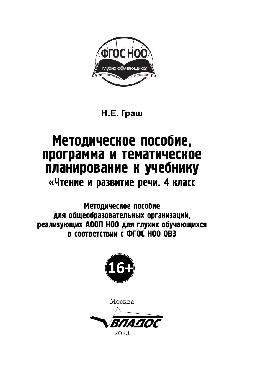 Методическое пособие, программа и тематическое планирование к учебнику "Чтение и развитие речи. 4 класс": методическое пособие для общеобразовательных организаций, реализующих АООП НОО для глухих обучающихся в соответствии с ФГОС НОО ОВЗ