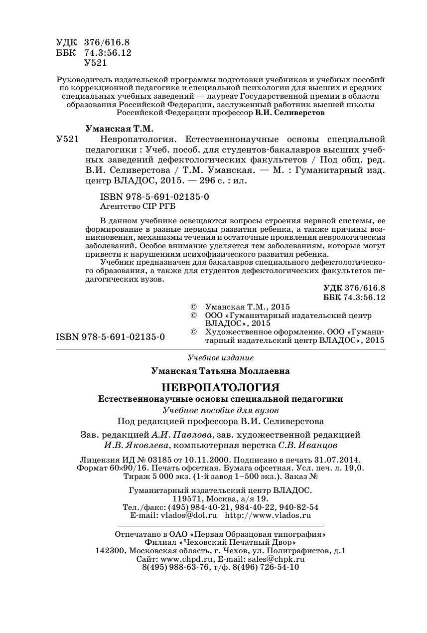 В данном учебнике освещаются вопросы строения нервной системы, ее формирование в разные периоды развития ребенка, а также причины возникновения, механизмы течения и остаточные проявления неврологическиз заболеваний. Особое внимание уделяется тем заболеваниям, которые могут привести к на рушениям психофизического развития ребенка. Учебник предназначен для бакалавров специального дефектологического образования, а также для студентов дефектологических факультетов педагогических вузов.