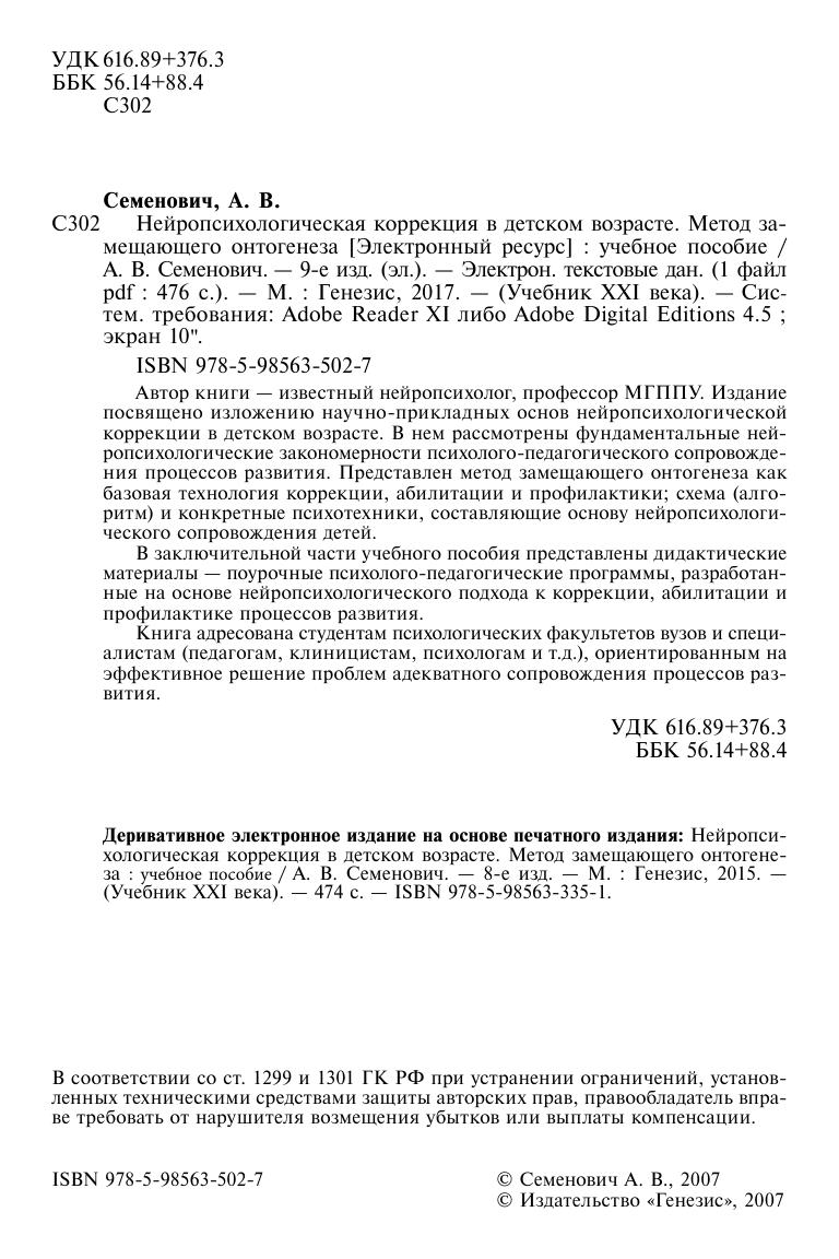 Книга адресована студентам психологических факультетов вузов и специалистам (педагогам, клиницистам, психологам и т.д.), ориентированным на эффективное решение проблем адекватного сопровождения процессов развития.