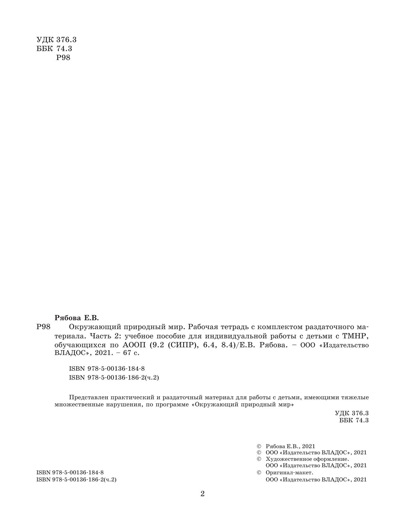 Окружающий природный мир. Рабочая тетрадь с комплектом раздаточного материала. Часть 2