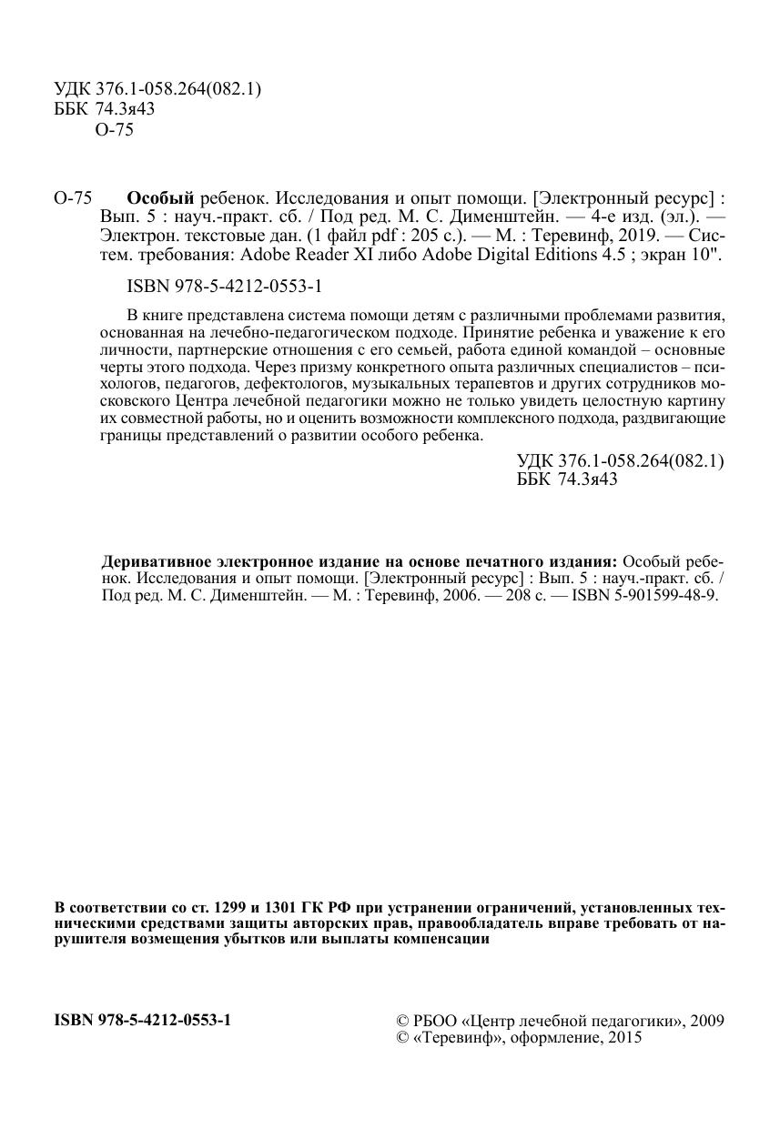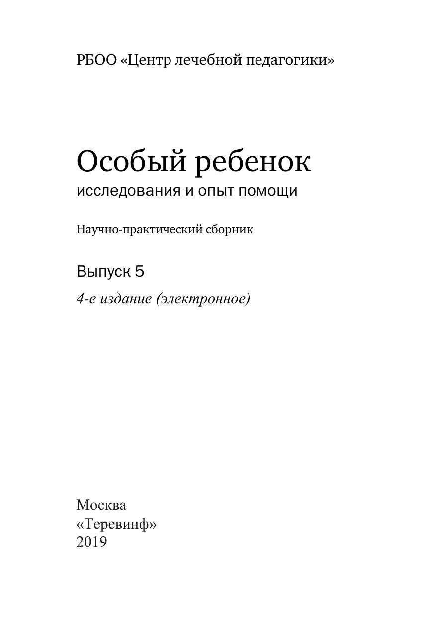 Особый ребенок. Исследования и опыт помощи. Вып. 5