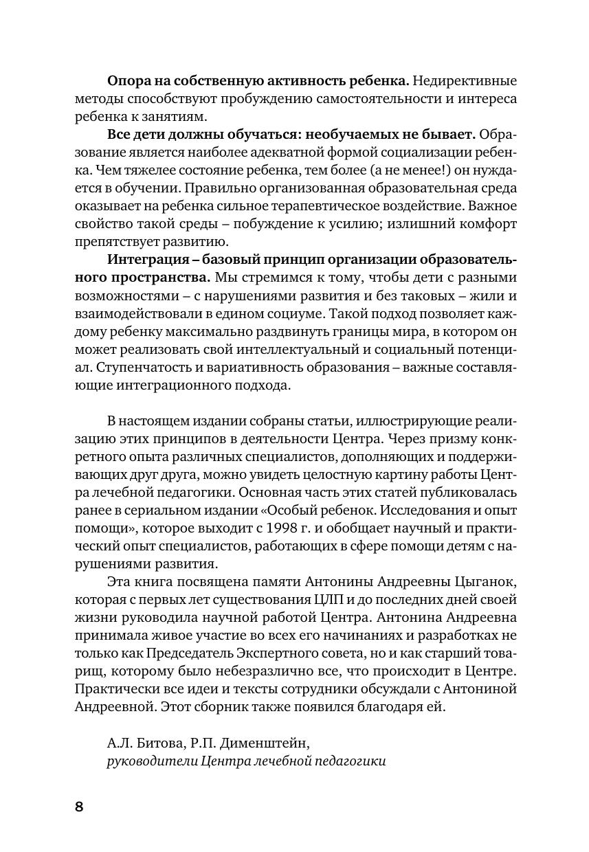 В книге представлена комплексная система помощи детям с различными проблемами развития, в том числе с аутизмом, речевыми, двигательными и другими нарушениями. Сотрудники московского Центра лечебной педагогики делятся своим многолетним опытом индивидуальной и групповой работы с особыми детьми и их семьями. В основе издания легли статьи разных лет, опубликованные ранее в пяти сборниках "Особый ребенок. Исследования и опыт помощи".