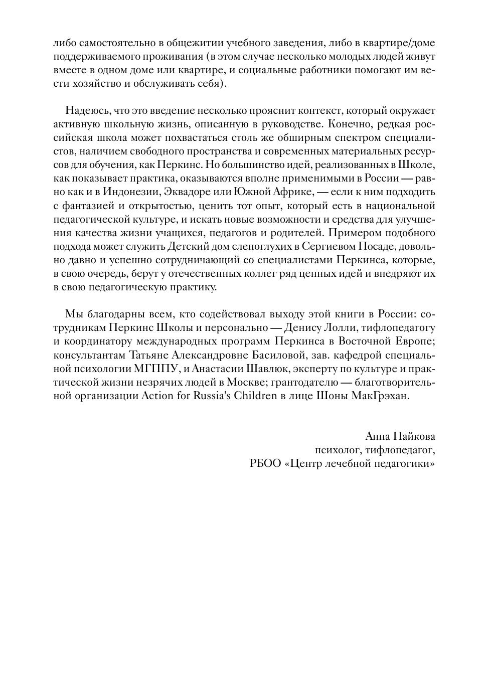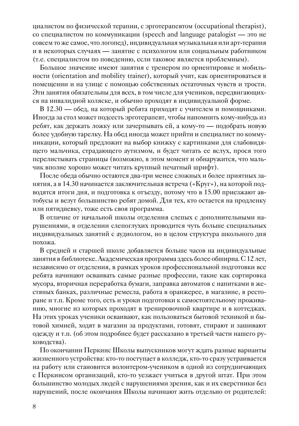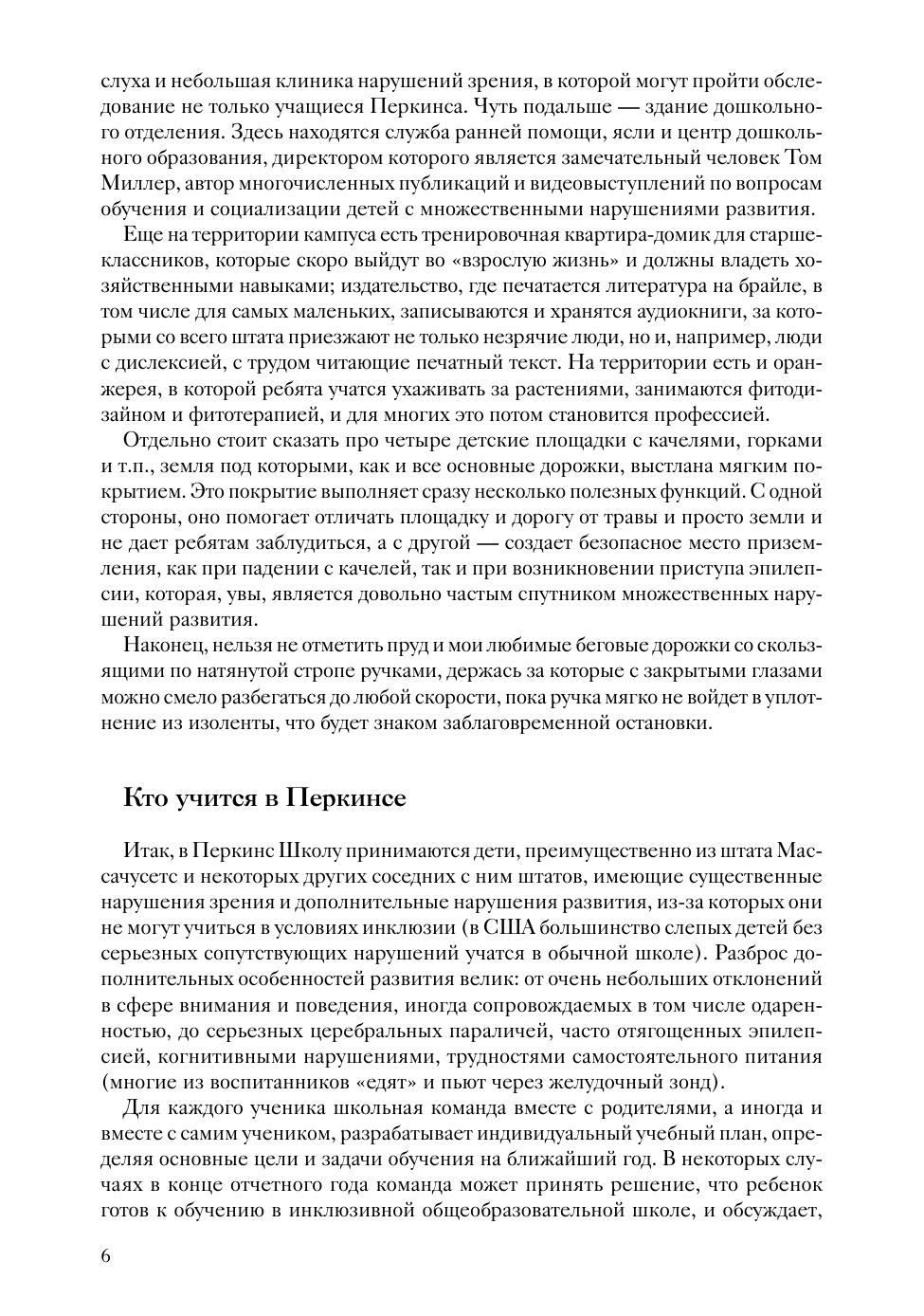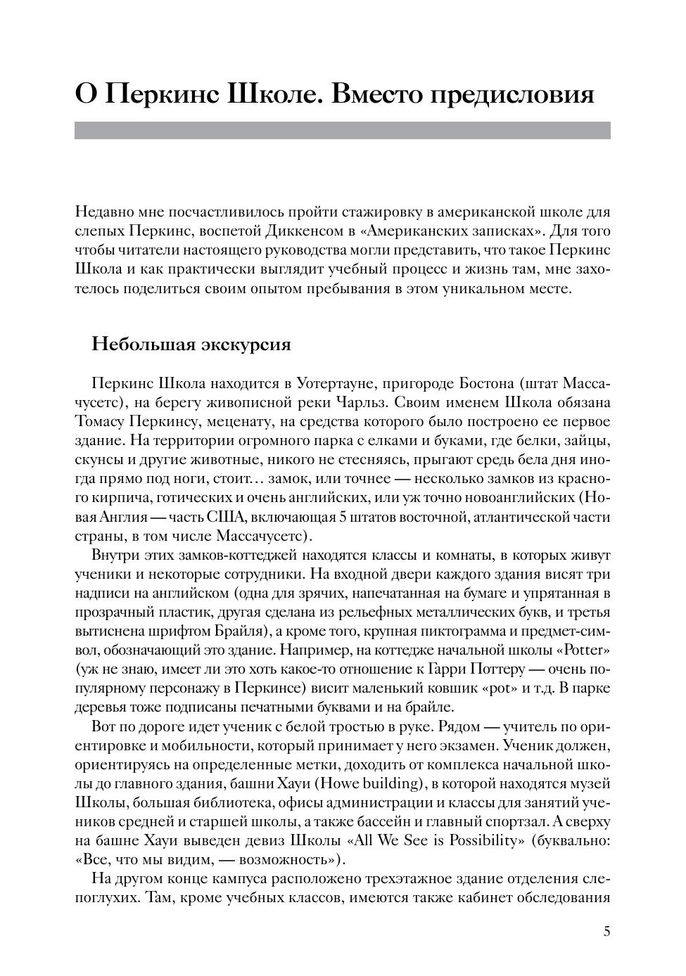 Издание знакомит читателя с наиболее актуальными подходами к построению учебного плана Перкинс Школы — первого образовательного учреждения для слепых в США, открытого в 1832 году при значительном содействии мецената Томаса Перкинса.
