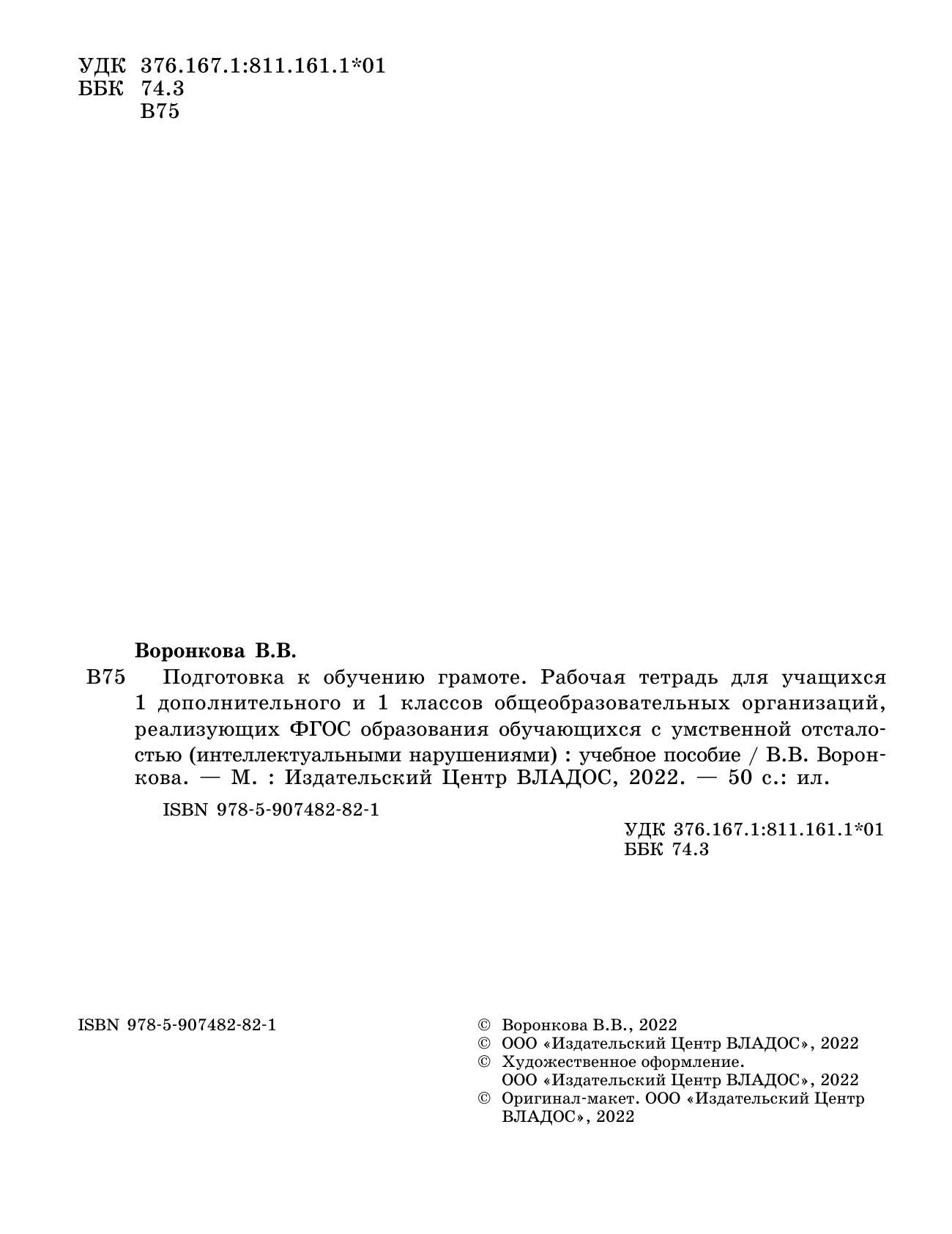 Подготовка к обучению грамоте. Рабочая тетрадь для учащихся 1 доп. и 1 кл. общеобразовательных организаций, реализующих ФГОС образования обучающихся с умственной отсталостью (интеллектуальными нарушениями)