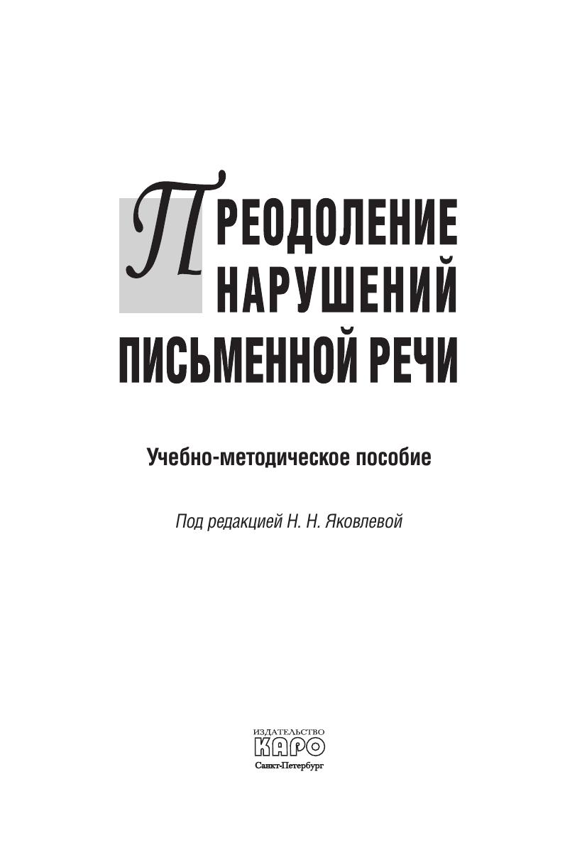 Преодоление нарушений письменной речи: Учебно-методическое пособие
