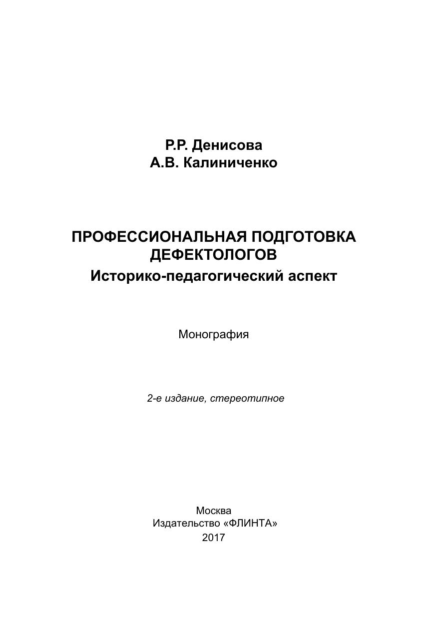Профессиональная подготовка дефектологов : историко-педагогический аспект : монография