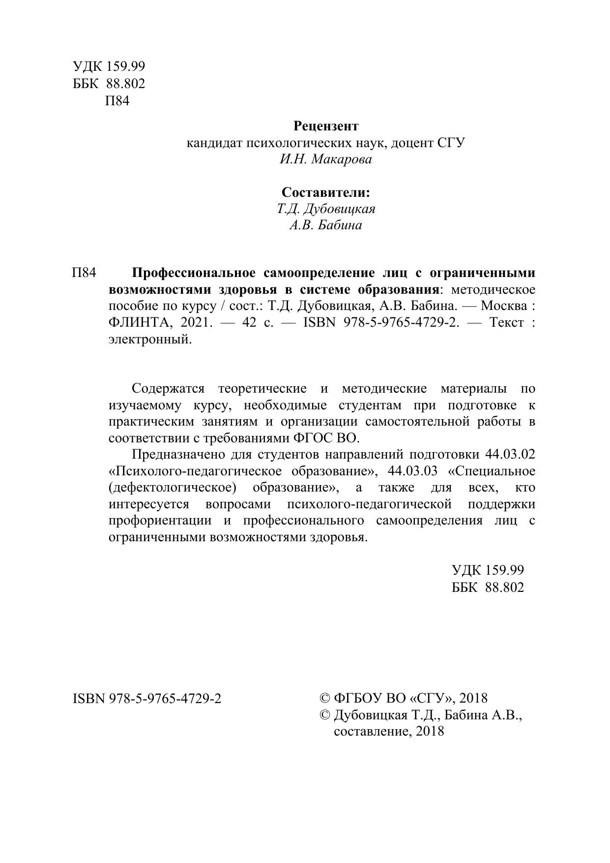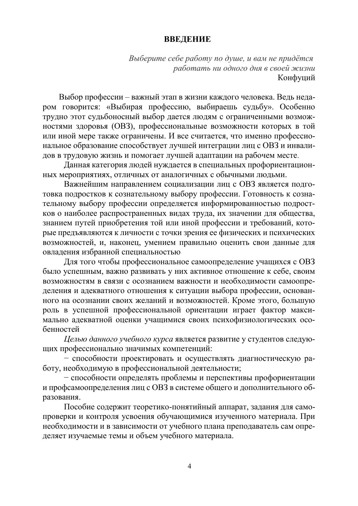Предназначено для студентов направлений подготовки 44.03.02 «Психолого-педагогическое образование», 44.03.03 «Специальное (дефектологическое) образование», а также для всех, кто интересуется вопросами психолого-педагогической поддержки профориентации и профессионального самоопределения лиц с ограниченными возможностями здоровья.