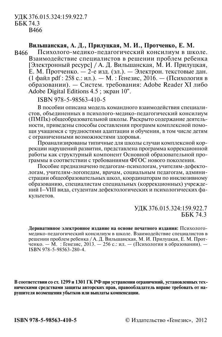 В пособии описана модель командного взаимодействия специалистов, объединенных в психолого-медико-педагогический консилиум (ПМПк) общеобразовательной школы. Раскрыто содержание деятельности, приведены способы составления программ комплексной помощи учащимся с трудностями адаптации и обучения, в том числе детям с ограниченными возможностями здоровья.