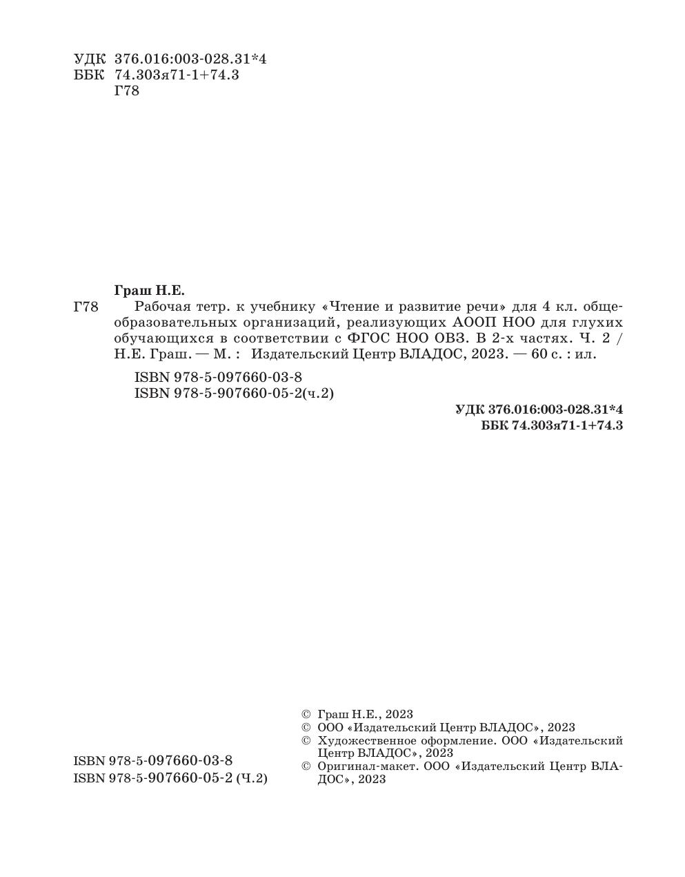 Рабочая тетрадь к учебнику "Чтение и развитие речи" для 4 кл. общеобразовательных организаций, реализующих АООП НОО для глухих обучающихся в соответствии с ФГОС НОО ОВЗ. В 2-х частях. Ч. 2