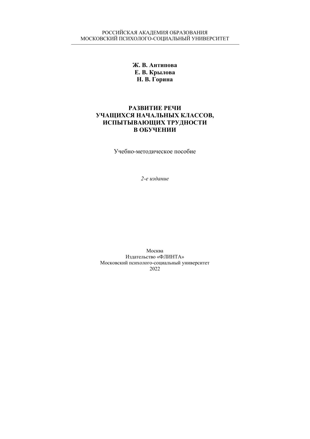 Авторы: Антипова Ж. В., Крылова Е. В., Горина Н. В.