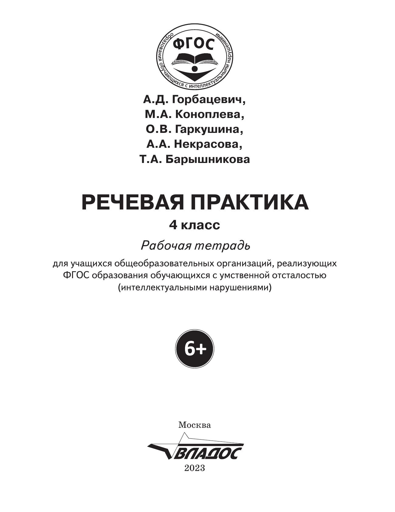 Речевая практика. 4 класс: рабочая тетрадь для учащихся общеобразовательных организаций, реализующих ФГОС образования обучающихся с умственной отсталостью (интеллектуальными нарушениями)