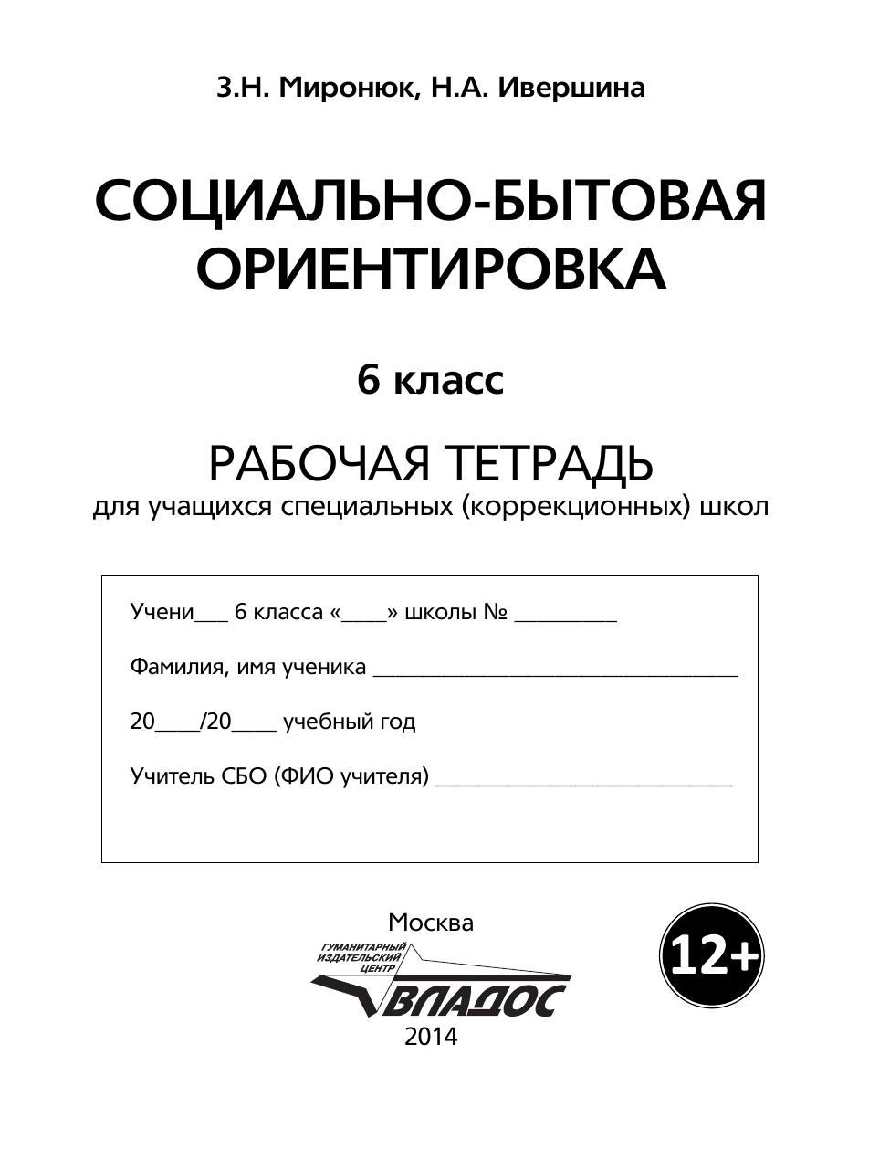 Социально-бытовая ориентировка. 6 класс: рабочая тетр. для учащихся спец. (коррекц.) шк.