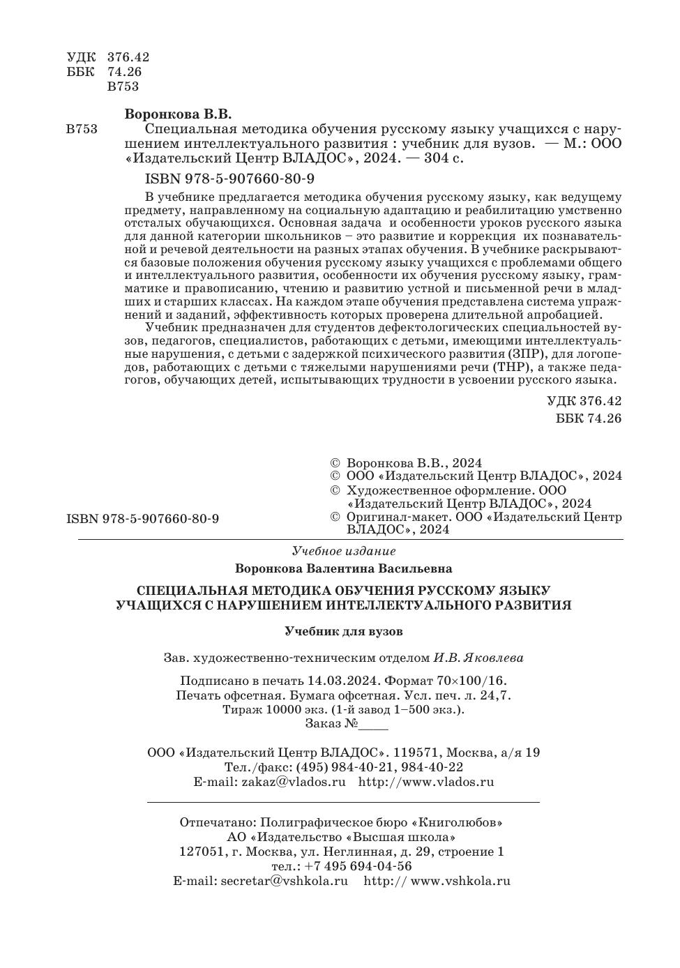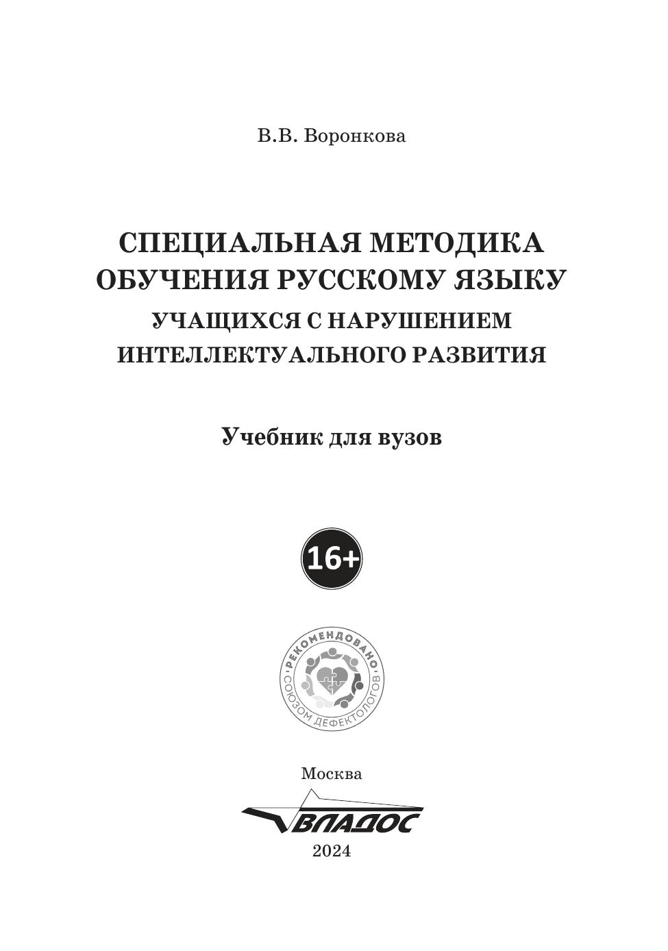 В учебнике предлагается методика обучения русскому языку, как ведущему предмету, направленному на социальную адаптацию и реабилитацию умственно отсталых обучающихся. Основная задача и особенности уроков русского языка для данной категории школьников - это развитие и коррекция их познавательной и речевой деятельности на разных этапах обучения. В учебнике раскрываются базовые положения обучения русскому языку учащихся с проблемами общего и интеллектуального развития, особенности их обучения русскому языку, грамматике и правописанию, чтению и развитию устной и письменной речи в младших и старших классах. На каждом этапе обучения представлена система упражнений и заданий, эффективность которых проверена длительной апробацией. Учебник предназначен для студентов дефектологических специальностей вузов, педагогов, специалистов, работающих с детьми, имеющими интеллектуальные нарушения, с детьми с задержкой психического развития (ЗПР), для логопедов, работающих с детьми с тяжелыми нарушениями речи (ТНР), а также педагогов, обучающих детей, испытывающих трудности в усвоении русского языка.