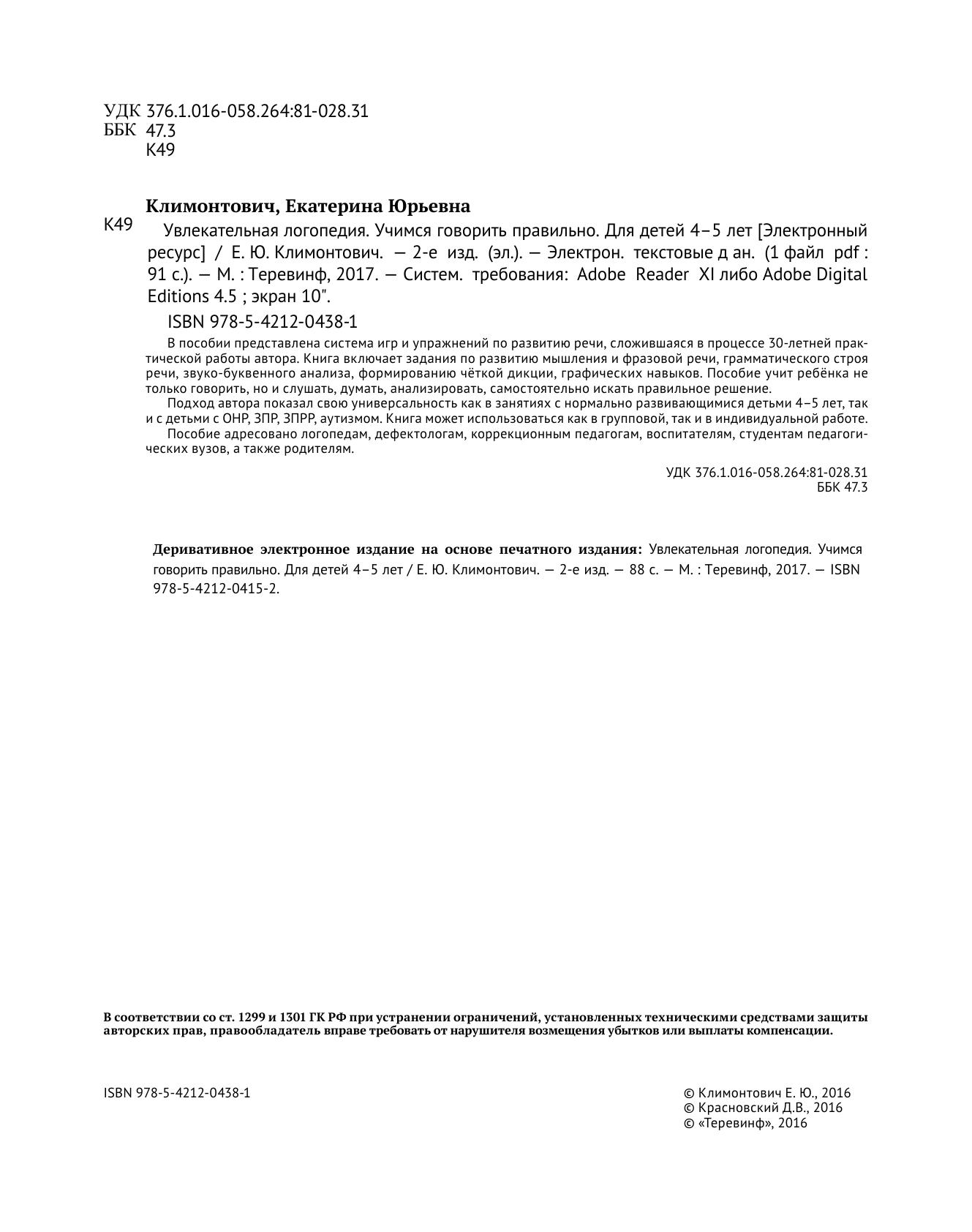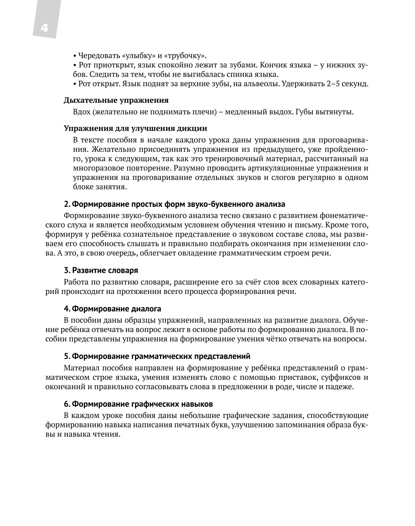 В пособии представлена система игр и упражнений по развитию речи, сложившаяся в процессе 30-летней практической работы автора. Предлагаемая система позволяет не только гармонично развивать речь и формировать начальные учебные навыки, но и наладить активное взаимодействие с ребенком. Подход автора показал свою универсальность как в работе с нормально развивающимися детьми 4-5 лет, так и с детьми с ОНР, ЗПР, ЗПРР, аутизмом.