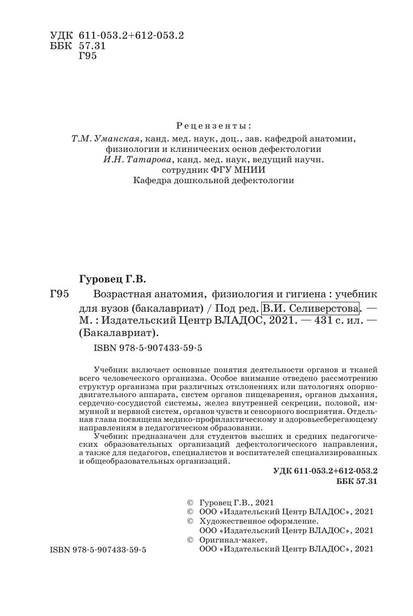 Учебник включает основные понятия деятельности органов и тканей всего человеческого организма. Особое внимание отведено рассмотрению структур организма при различных отклонениях или патологиях опорно- двигательного аппарата, систем органов пищеварения, органов дыхания, сердечно-сосудистой системы, желез внутренней секреции, половой, иммунной и нервной систем, органов чувств и сенсорного восприятия. Отдельная глава посвящена медико-профилактическому и здоровьесберегающему направлениям в педагогическом образовании. Учебник предназначен для студентов высших и средних педагогических образовательных организаций дефектологического направления, а также для педагогов, специалистов и воспитателей специализированных и общеобразовательных организаций.