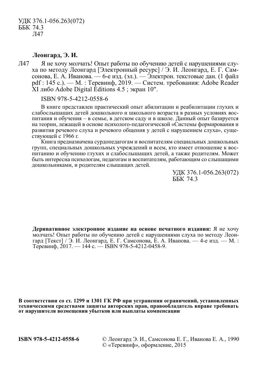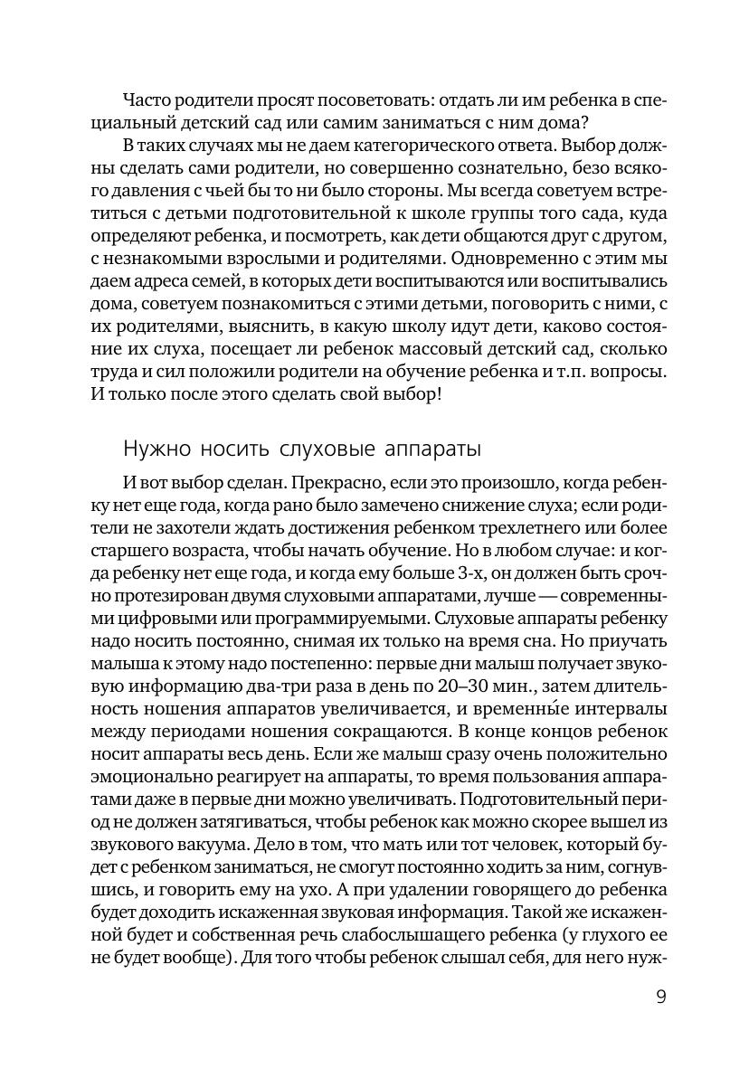 В книге представлен практический опыт абилитации и реабилитации глухих и слабослышащих детей дошкольного и школьного возраста в разных условиях воспитания и обучения — в семье, в детском саду и в школе. Данный опыт базируется на теории, лежащей в основе психолого-педагогической «Системы формирования и развития речевого слуха и речевого общения у детей с нарушением слуха», существующей с 1966 года.