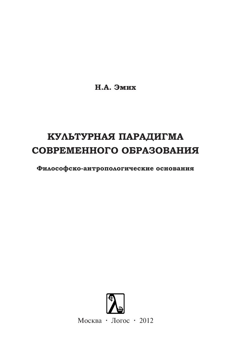 Культурная парадигма современного образования: Философско-антропологические основания