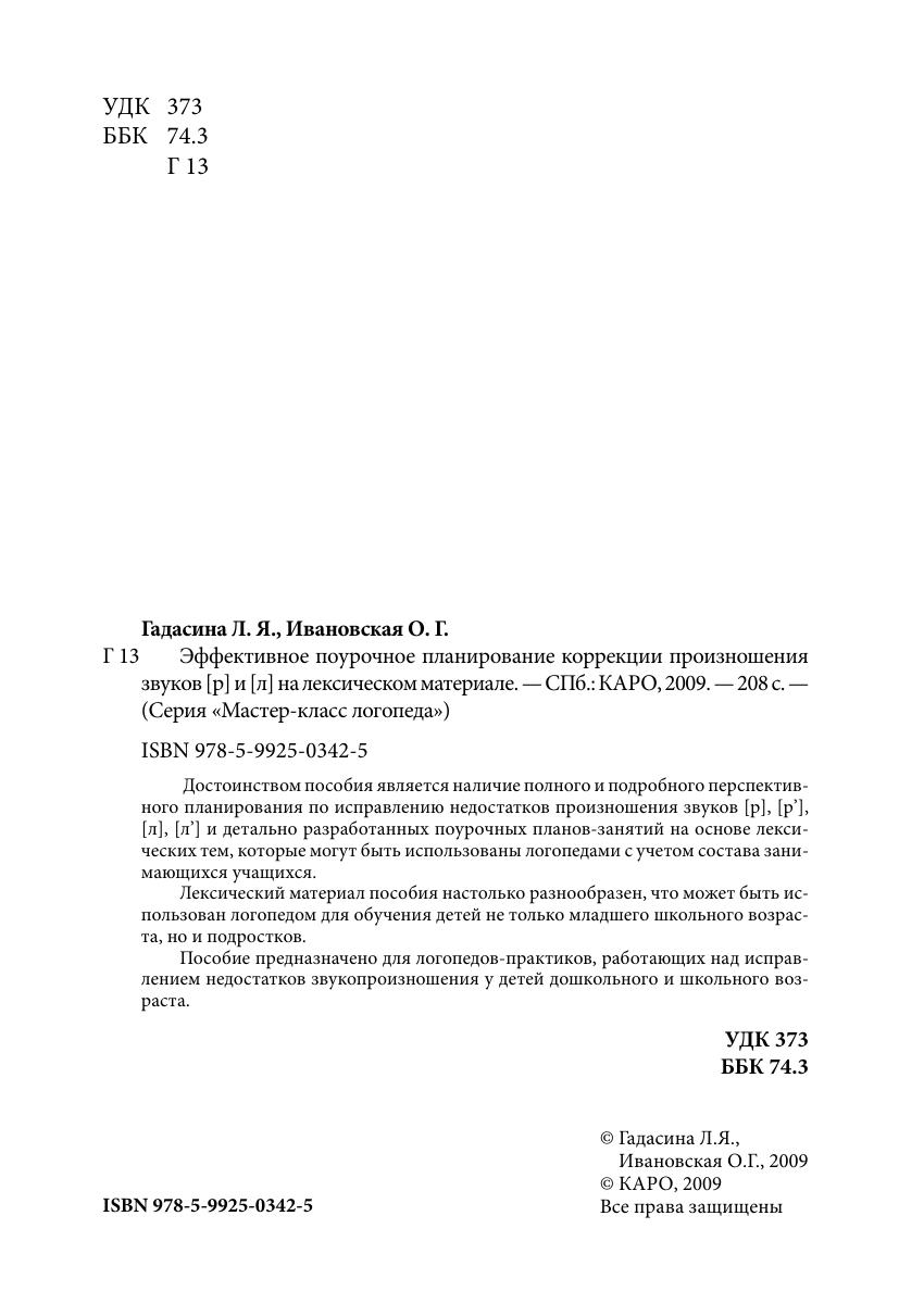 Достоинством пособия является наличие полного и подробного перспективного планирования по исправлению недостатков произношения звуков [р], [р'], [л], [л'] и детально разработанных поурочных планов-занятий на основе лексических тем, которые могут быть использованы логопедами с учетом состава занимающихся учащихся.Лексический материал пособия настолько разнообразен, что может быть использован логопедом для обучения детей, не только младшего школьного возраста, но и подростков.
