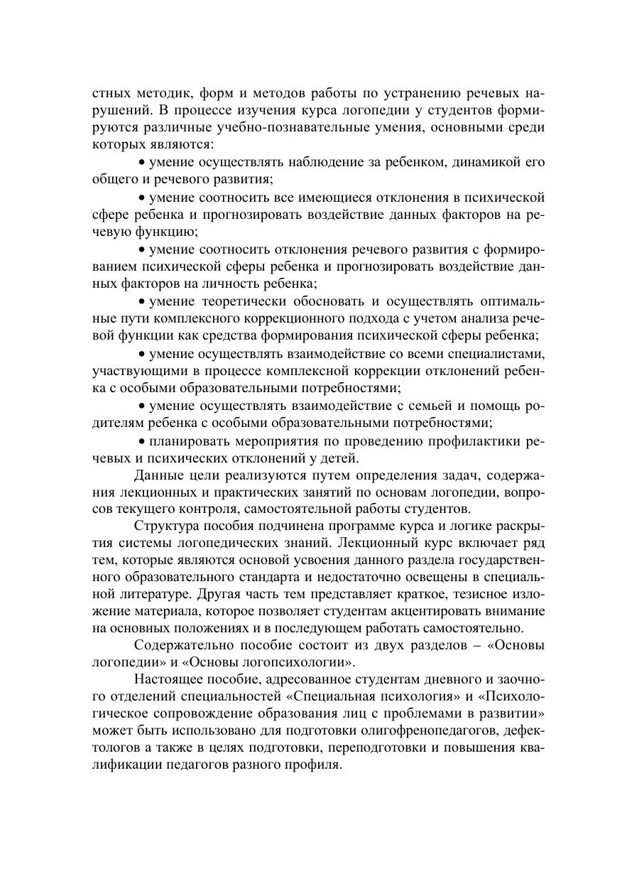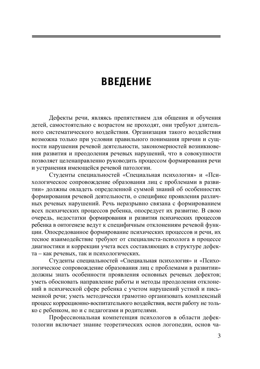 и «Психологическое сопровождение образования лиц с проблемами в развитии», раскрывающий основные закономерности анализа и коррекции речевых нарушений у детей. Анализ речевых нарушений с позиций психологии позволит студентам данных специальностей выбрать вер-ную профессиональную позицию в комплексном процессе диагностики и коррекции речевых нарушений у разных категорий детей с особыми образовательными потребностями.