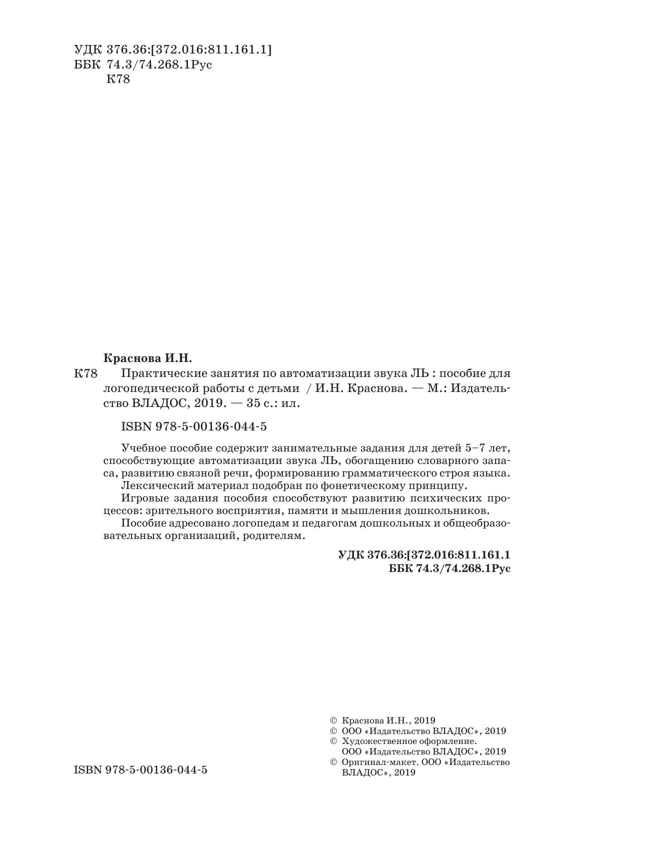 Учебное пособие содержит занимательные задания для детей 5–7 лет, способствующие автоматизации звука ЛЬ, обогащению словарного запаса, развитию связной речи, формированию грамматического строя языка. Лексический материал подобран по фонетическому принципу. Игровые задания пособия способствуют развитию психических процессов: зрительного восприятия, памяти и мышления дошкольников. Пособие адресовано логопедам и педагогам дошкольных и общеобразовательных организаций, родителям.