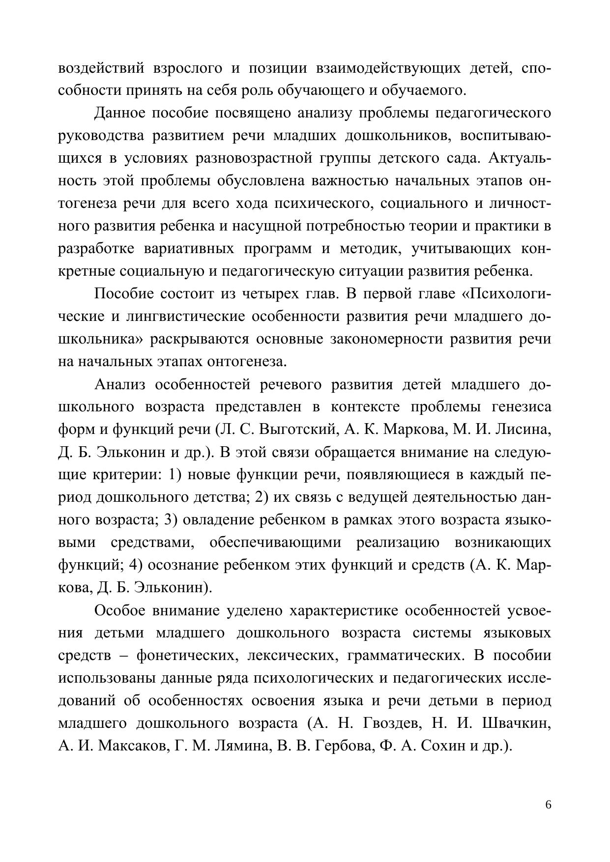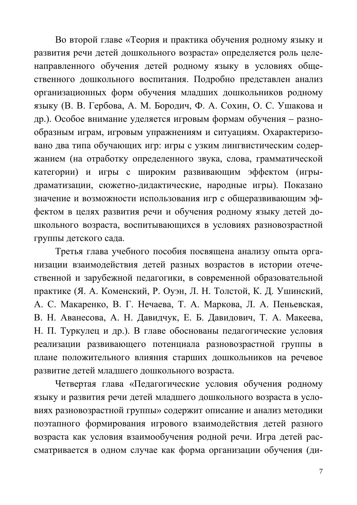 Учебно-методическое пособие посвящено проблеме педагогического руководства развитием речи младших дошкольников, воспитывающихся в условиях разновозрастной группы детского сада. В нем рассматривается методика поэтапного формирования совместных игр детей разного возраста как условия взаимообучения родной речи.