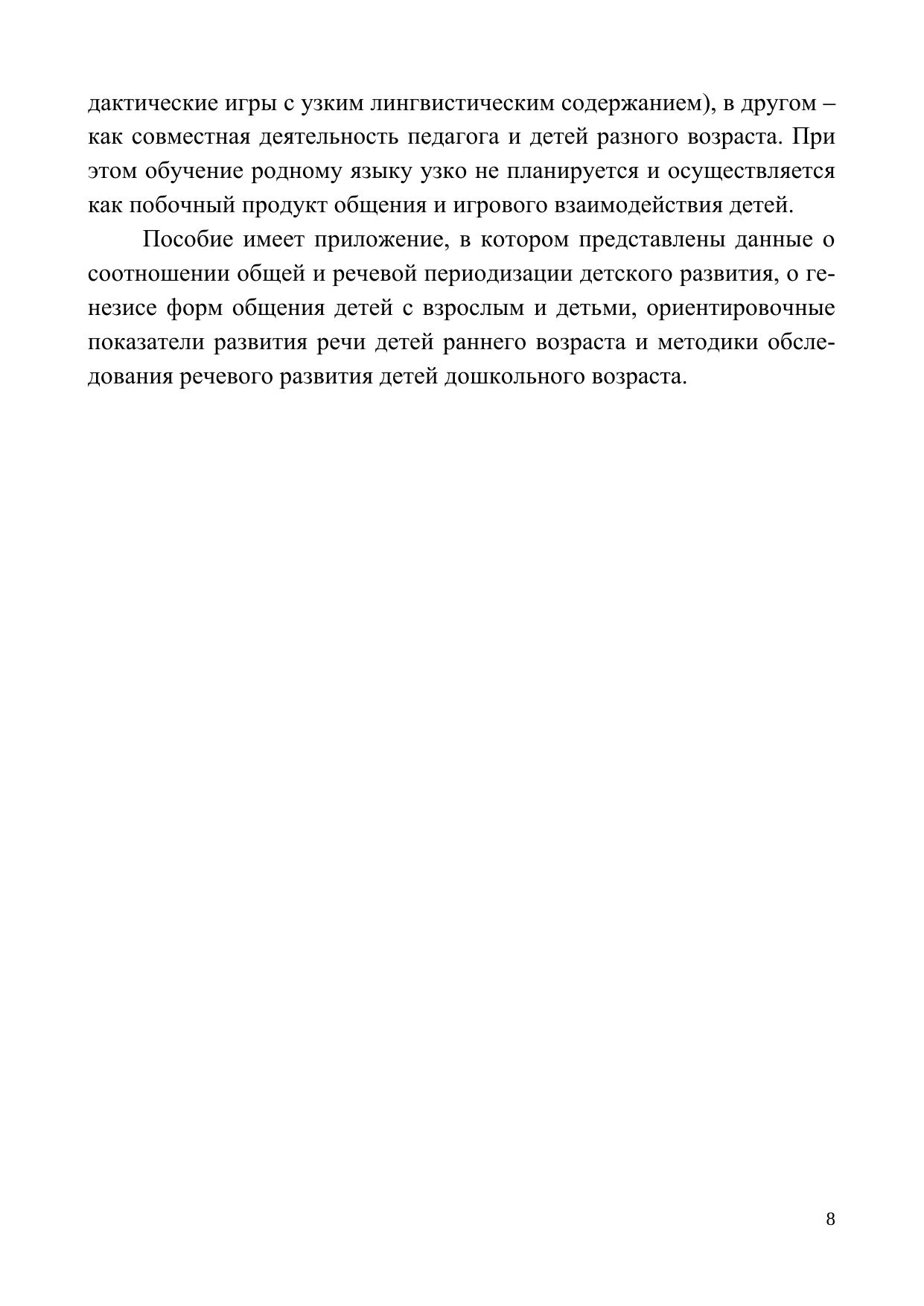 Пособие предназначено преподавателям педагогических вузов и колледжей, студентам, воспитателям, а также специалистам, занимающимся проблемами дошкольной дидактики, вопросами речевого развития детей дошкольного возраста.