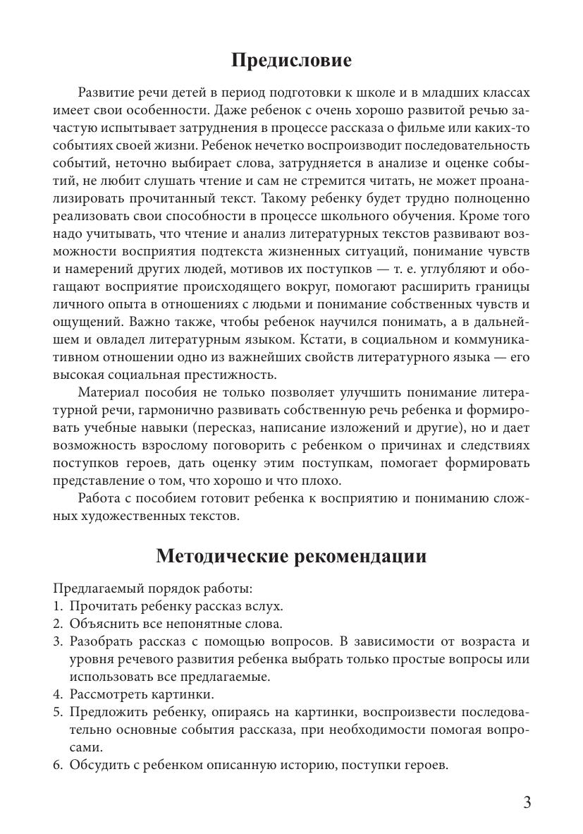 Предлагаемое пособие представляет собой серию занимательных рассказов с картинками и вопросы для анализа текста. Материал пособия готовит ребенка к понимаю сложных художественных текстов и сможет быть полезен в работе как с нормально развивающимися детьми 5–7 лет, так и с детьми с недоразвитием речи на завершающем этапе коррекционной работы.