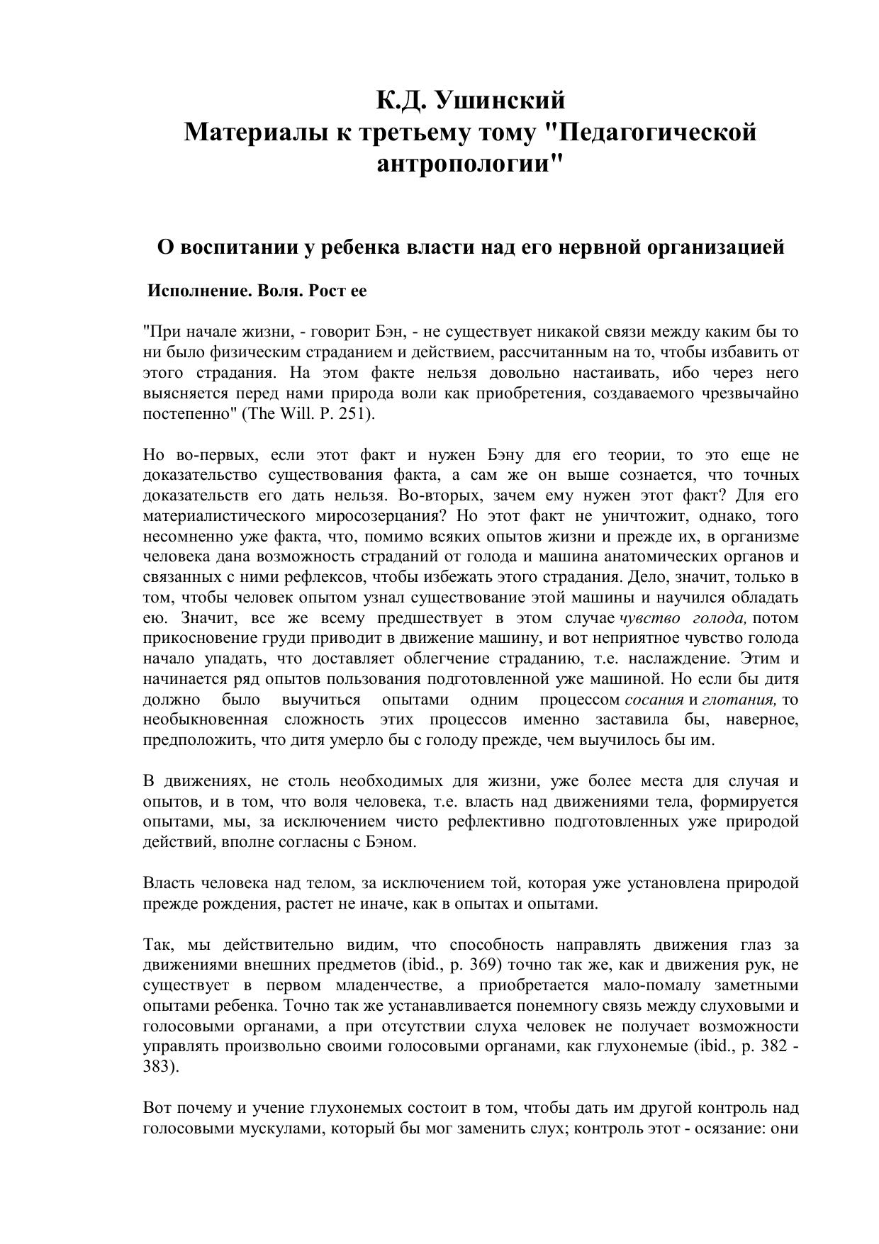 Материалы к третьему тому "Педагогической антропологии"