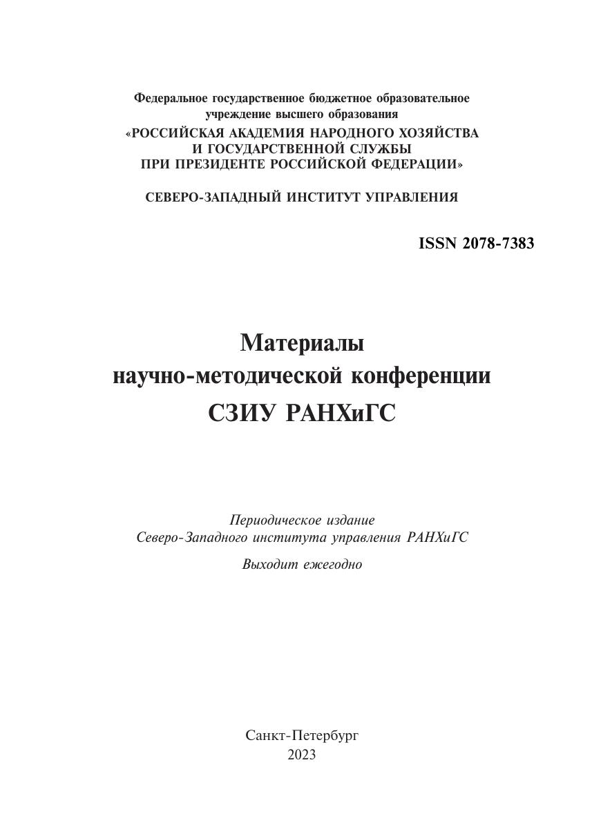 Материалы научно-методической конференции СЗИУ РАНХиГС