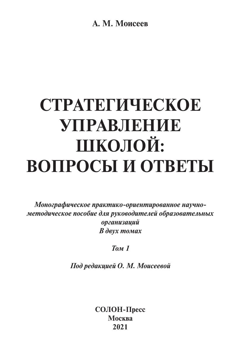 Стратегическое управление школой: вопросы и ответы. Том 1
