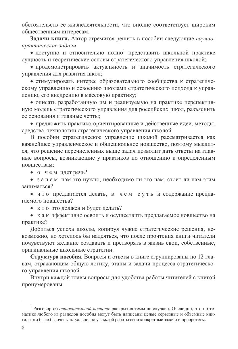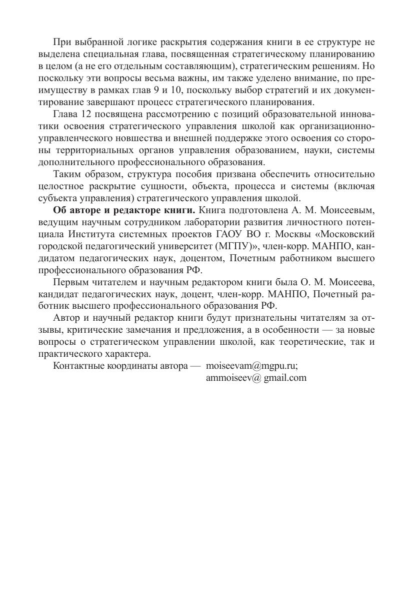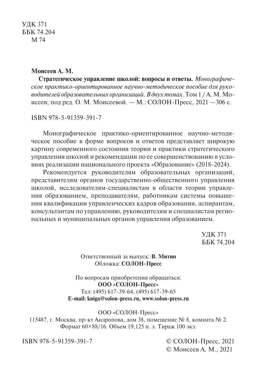 Монографическое практико-ориентированное научно-методическое пособие в форме вопросов и ответов пред-ставляет широкую картину современного состояния теории и практики стратегического управления школой и рекомендации по ее совершенствованию в условиях реализации национального проекта «Образование» (2018-2024).