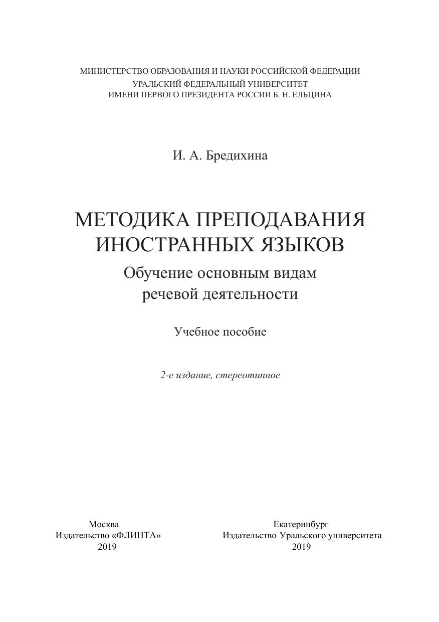 Методика преподавания иностранных языков. Обучение основным видам речевой деятельности