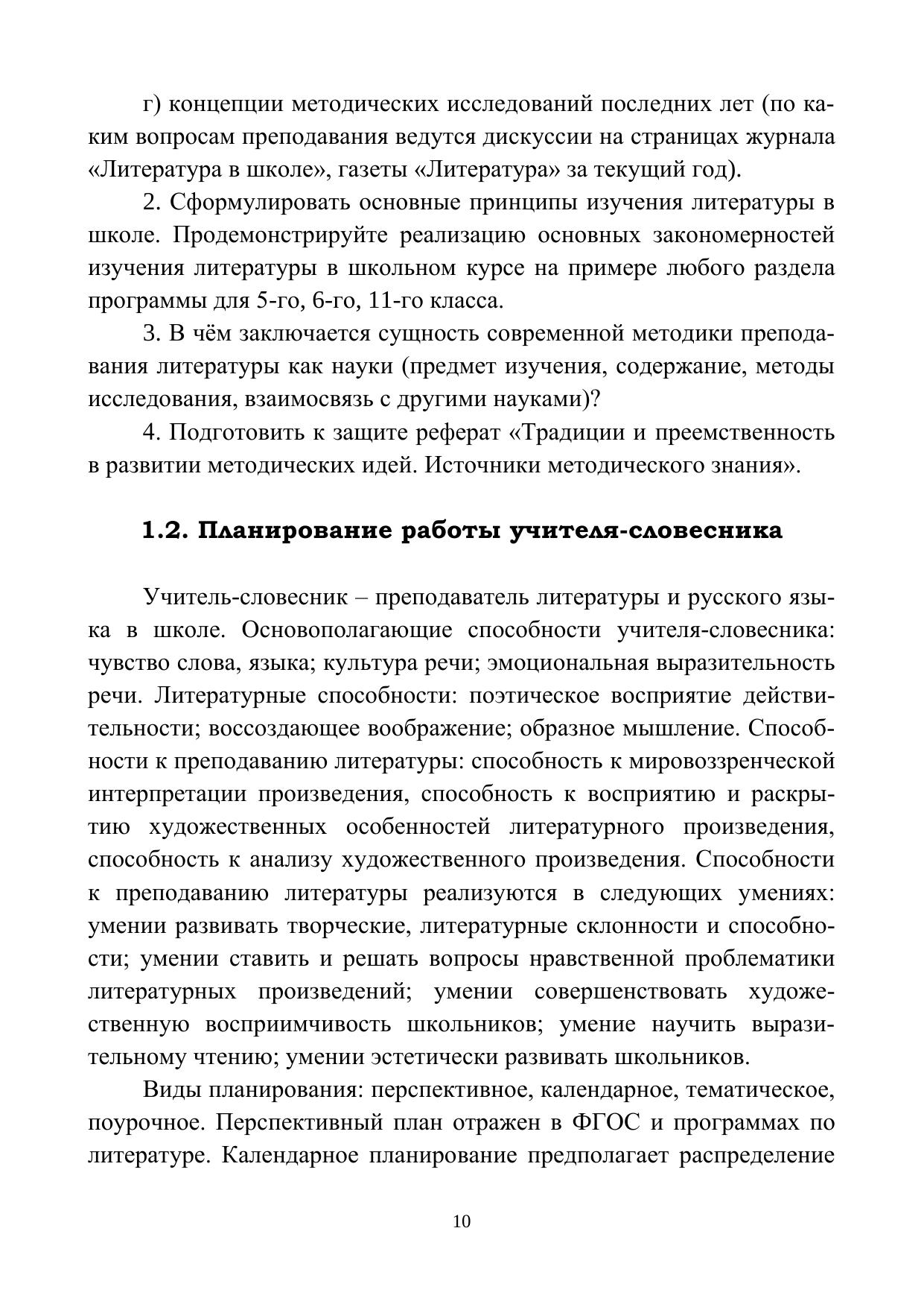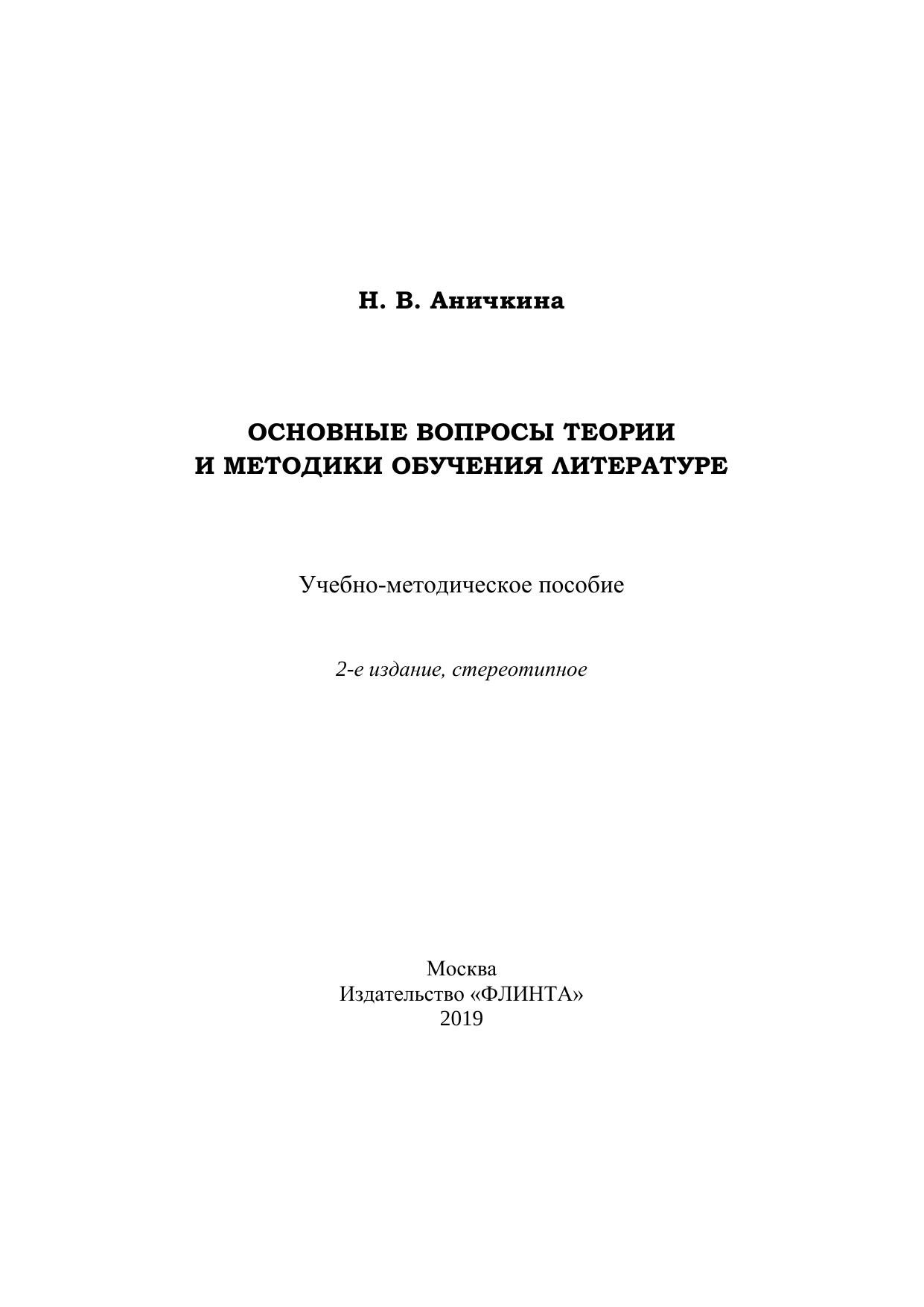 Основные вопросы теории и методики обучения литературе