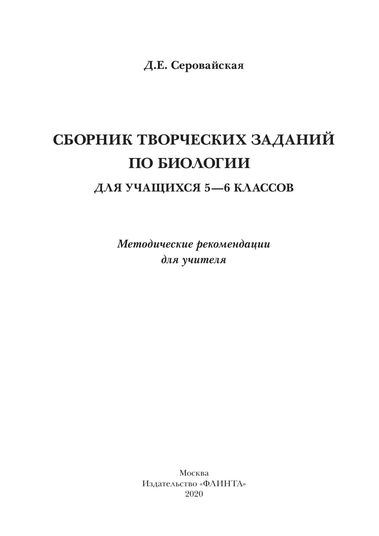 Сборник творческих заданий по биологии для учащихся 5-6 классов: методические рекомендации для учителя