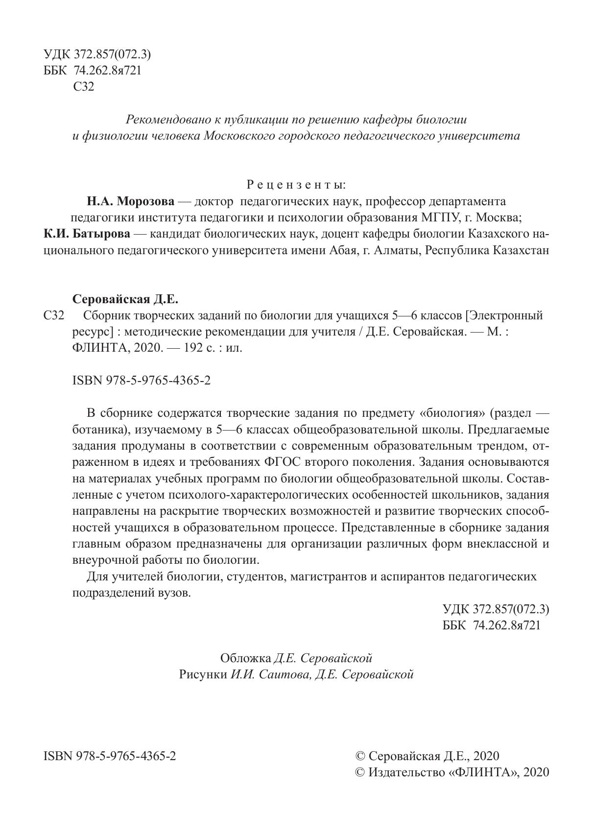В сборнике содержатся творческие задания по предмету «биология» (раздел — ботаника), изучаемому в 5—6 классах общеобразовательной школы. Предлагаемые задания продуманы в соответствии с современным образовательным трендом, от-