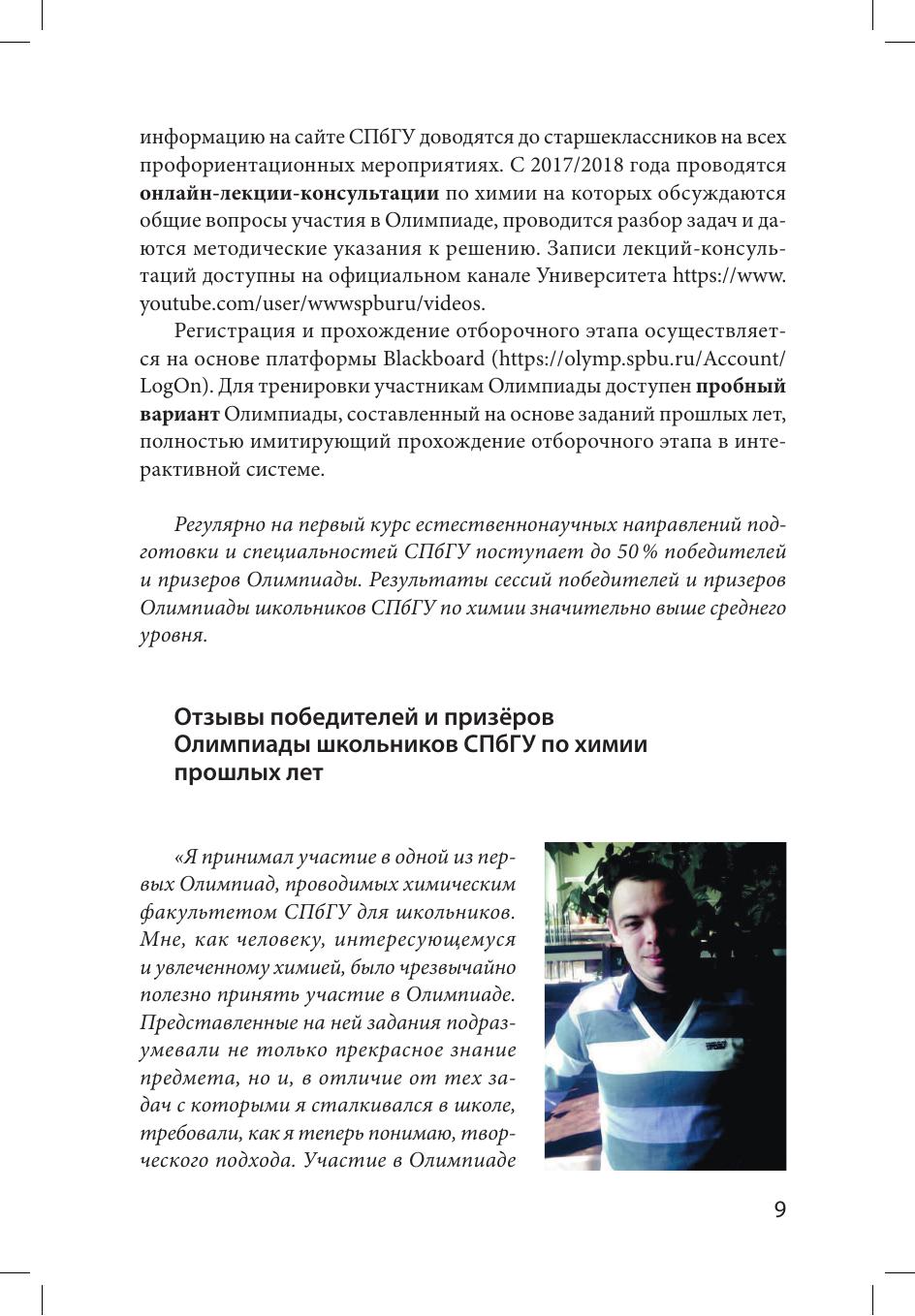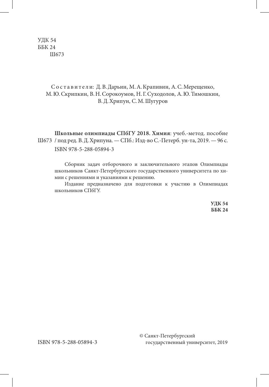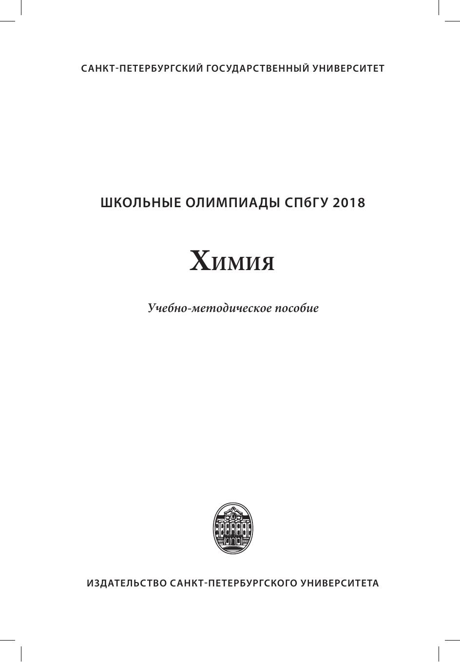 Сборник задач отборочного и заключительного этапов Олимпиады школьников Санкт-Петербургского государственного университета по химии с решениями и указаниями к решению. Издание предназначено для подготовки к участию в Олимпиадах