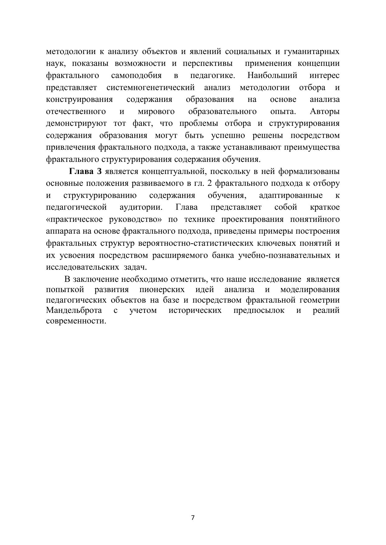 Монография посвящена проблеме отбора и структурирования содержания математического образования на основе фрактального подхода. Разработанная и апробированная авторами технология фрактального конструирования структуры содержания обучения математическим дисциплинам в вузе активизирует научно-