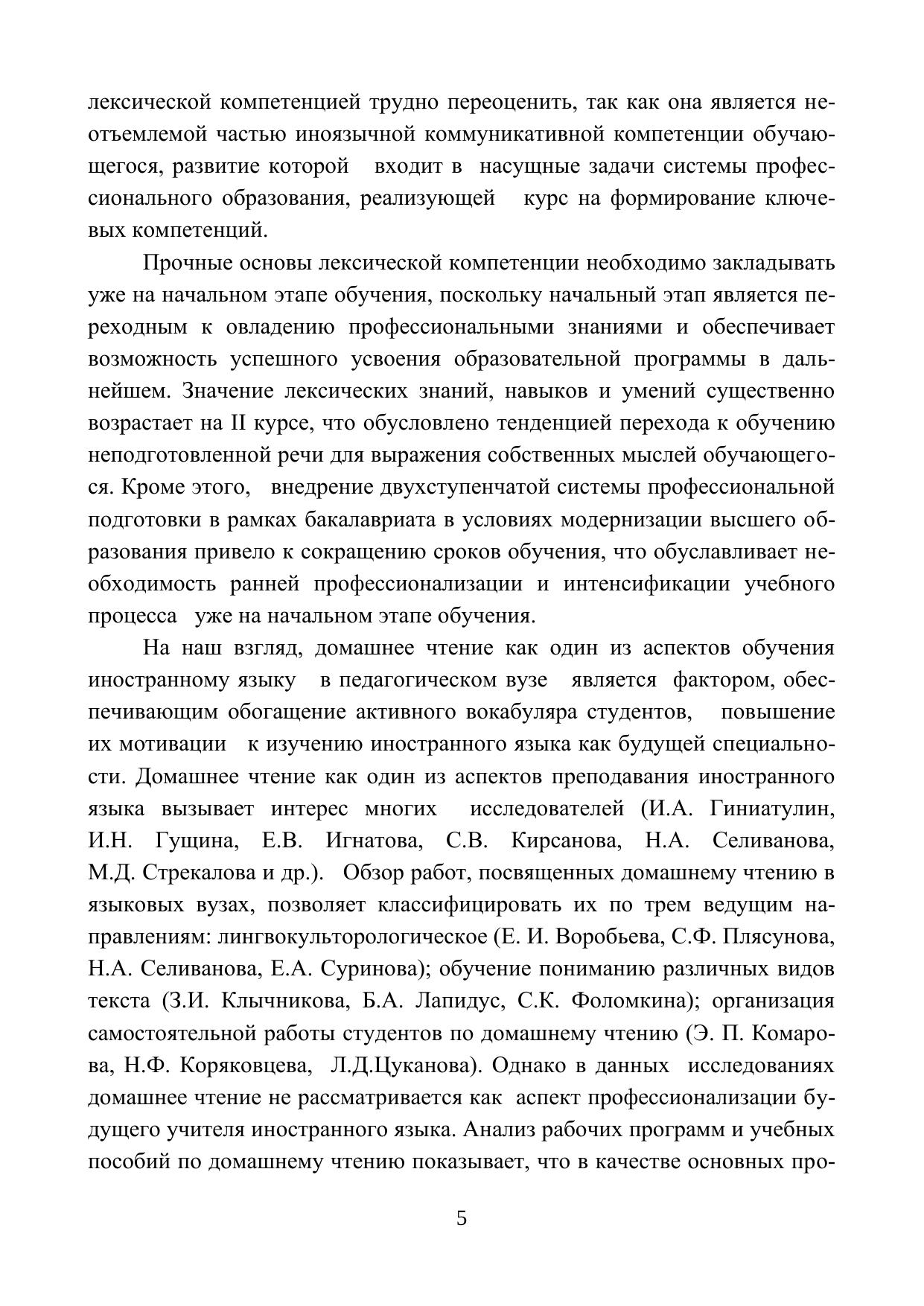 Теория и практика формирования профессиональной лексической компетенции будущего учителя английского языка на занятиях по домашнему чтению