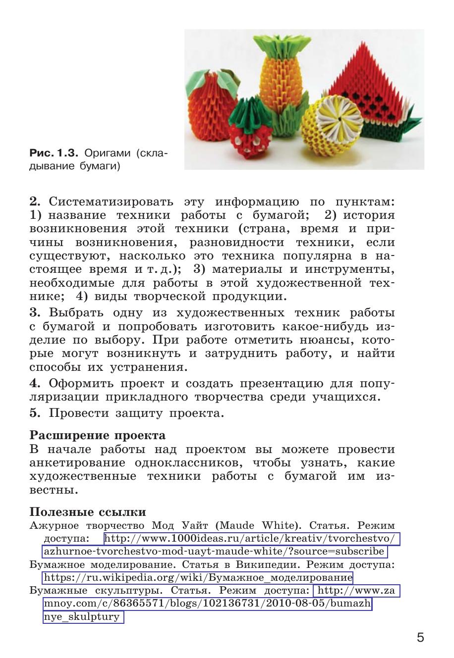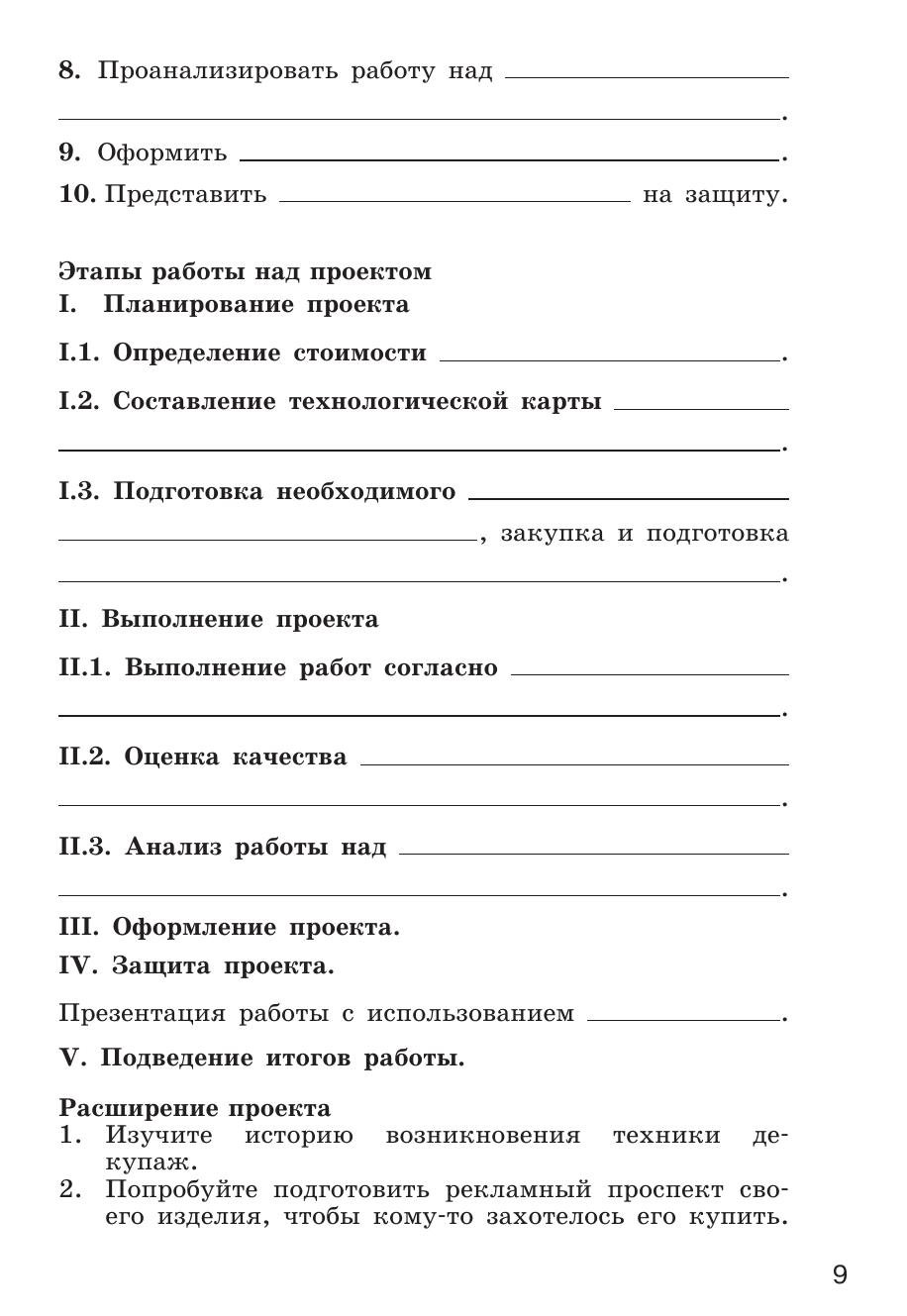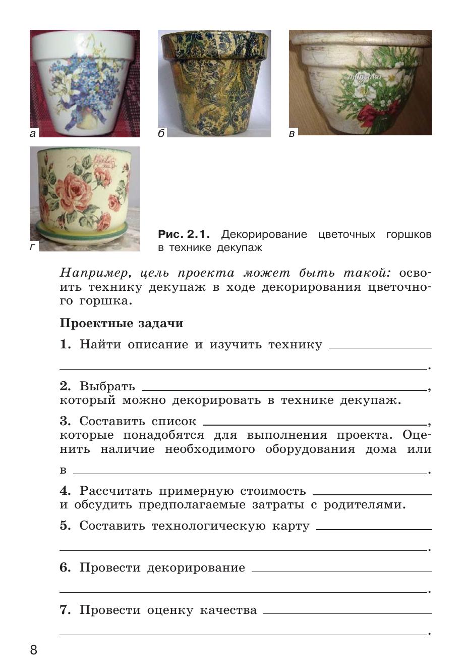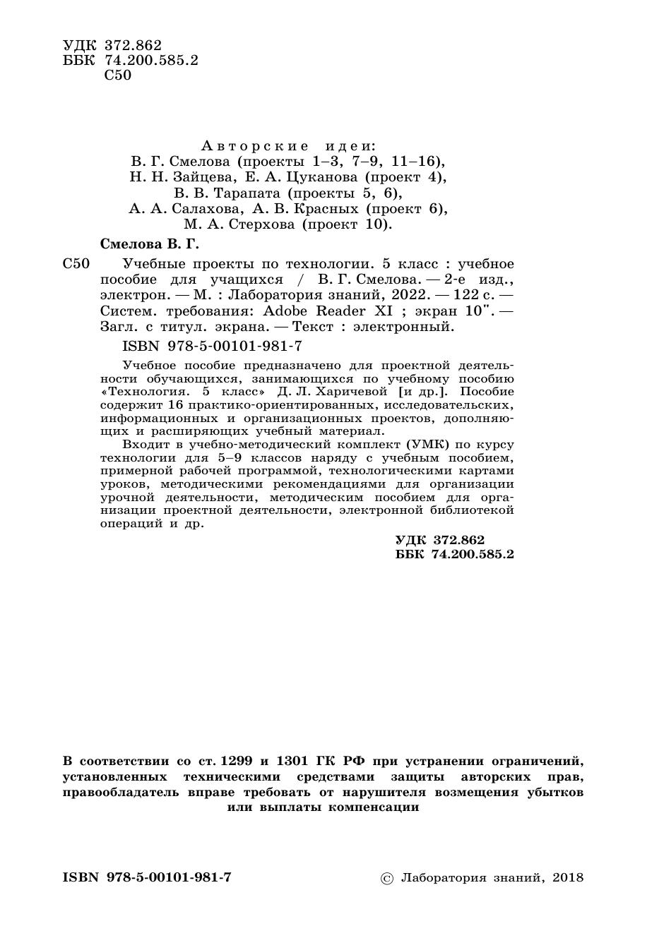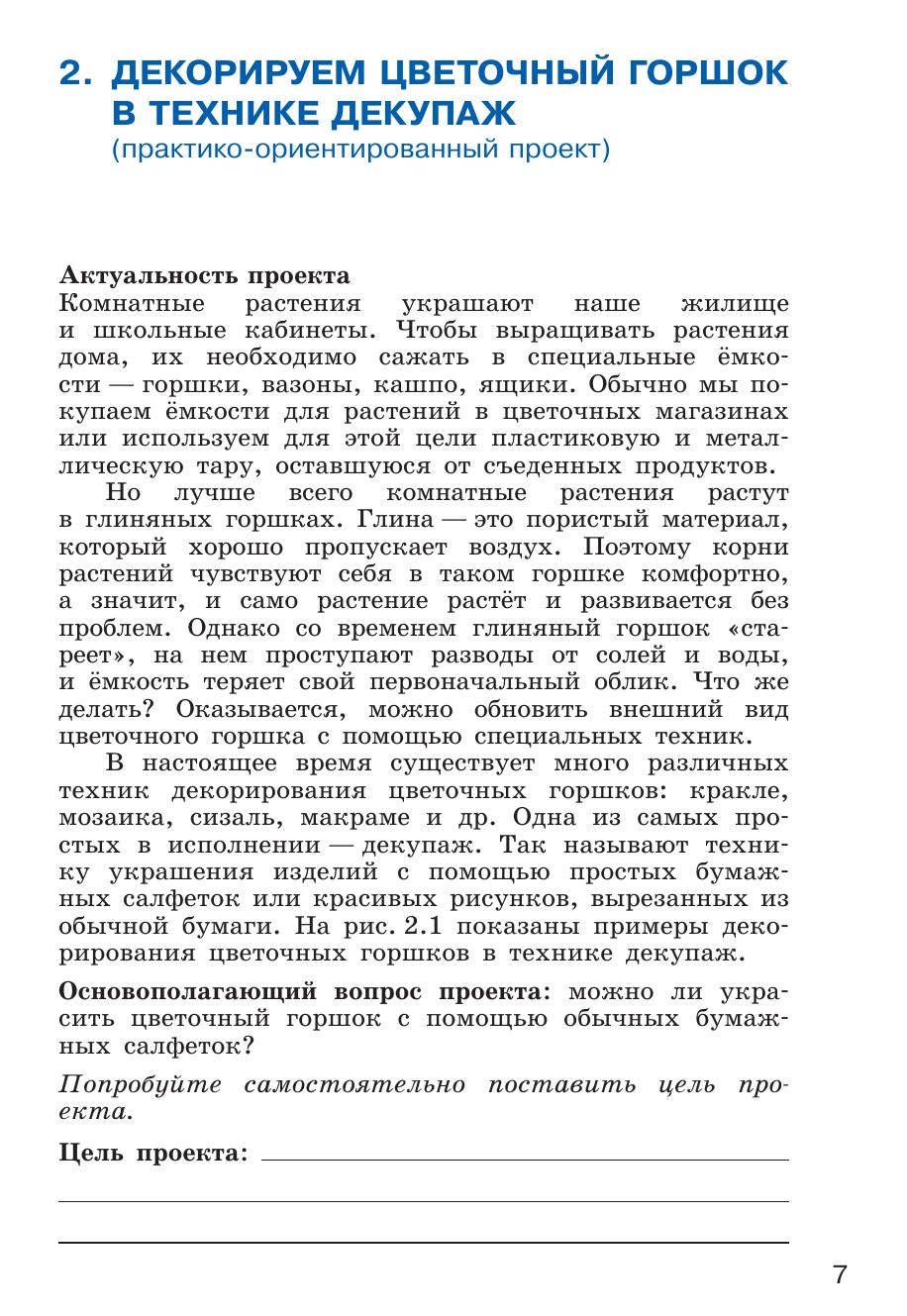 Учебное пособие предназначено для проектной деятельности обучающихся, занимающихся по учебному пособию «Технология. 5 класс» Д. Л. Харичевой [и др.]. Пособие содержит 16 практико-ориентированных, исследовательских, информационных и организационных проектов, дополняющих и расширяющих учебный материал. Входит в учебно-методический комплект (УМК) по курсу технологии для 5–9 классов наряду с учебным пособием, примерной рабочей программой, технологическими картами уроков, методическими рекомендациями для организации урочной деятельности, методическим пособием для организации проектной деятельности, электронной библиотекой операций и др.