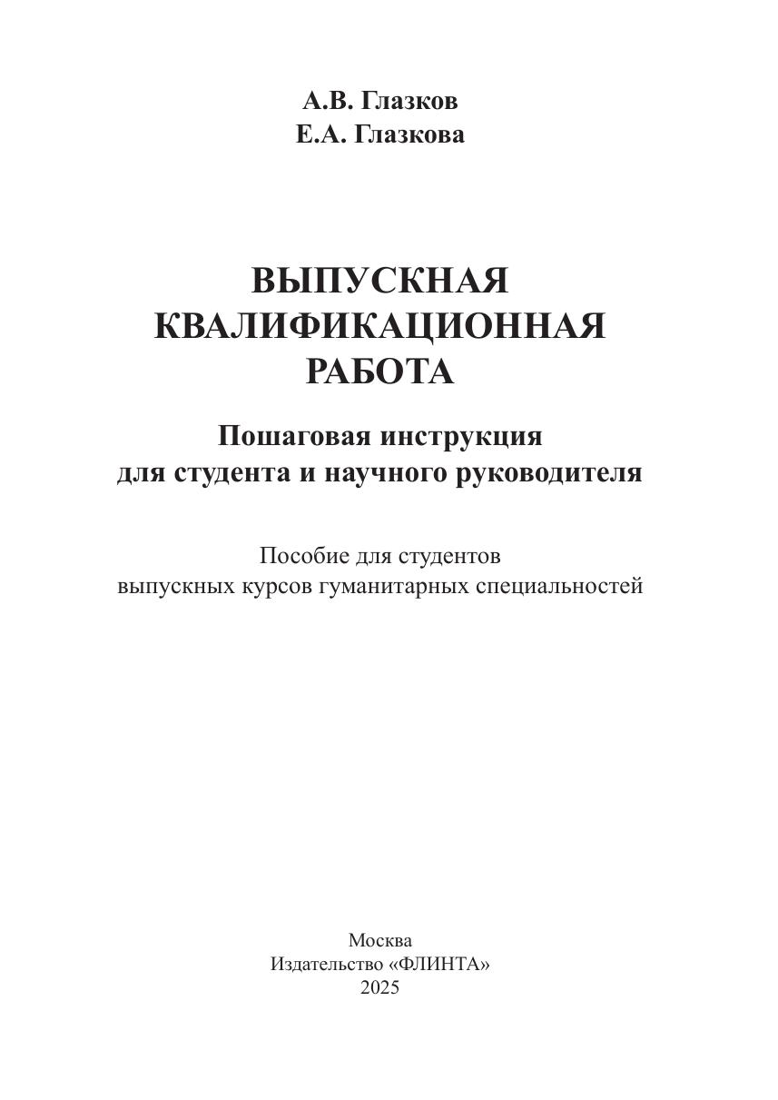 Выпускная квалификационная работа: пошаговая инструкция для студента и научного руководителя: пособие для студентов выпускных курсов гуманитарных специальностей