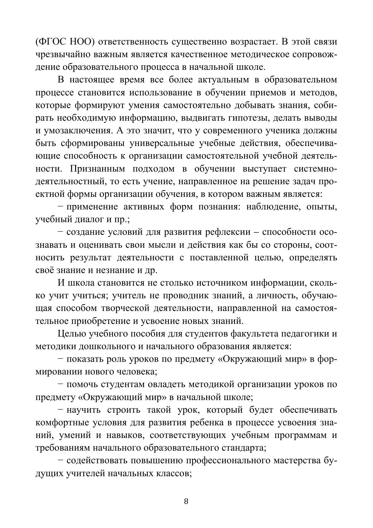 Учебно-методическое пособие предназначено для студентов факультета дошкольного и начального образования с целью их подготовки к профессиональной деятельности. Пособие соответствует новому содержанию учебной дисциплины «Окружающий мир». Учебный материал в пособии изложен в соответствии с современными принципами развивающего обучения. В пособии рассматривается использование технологической карты, что поможет будущему учителю организовать эффективный учебный процесс в соответствии с требованиями ФГОС второго поколения. Учебно-методическое пособие будет полезно также учителям начальных классов и слушателям факультетов переподготовки учителей в системе последипломного образования.