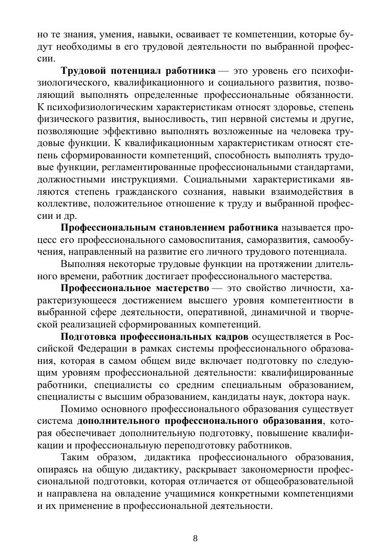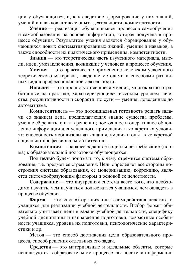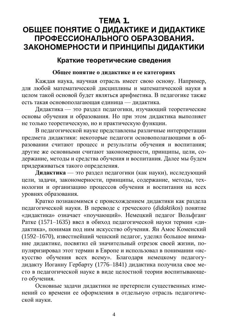 Учебное пособие является вводным курсом для освоения дисциплины «Методика профессионального обучения». Оно содержит сведения по основным разделам этой дисциплины. Особенность его состоит в сжатом изложении важнейших понятий и фундаментальные теорий, на которые опирается наука дидактика. Содержание книги поможет в краткие сроки получить базовые представления о данной области педагогической науки тем, кто впервые сталкивается с этими вопросами. Но также поможет быстро подготовиться к зачету или экзамену тем, кто уже заканчивает освоение дидактики. Кроме того, пособие содержит большое количество вопросов для самопроверки, содержит практические задания и примеры их решения. Предназначено для бакалавров и магистрантов направления подготовки «Профессиональное обучение (по отраслям)», а также слушателям программ профессиональной переподготовки: «Педагог профессионального обучения», «Педагог высшей школы», «Психология и педагогика».