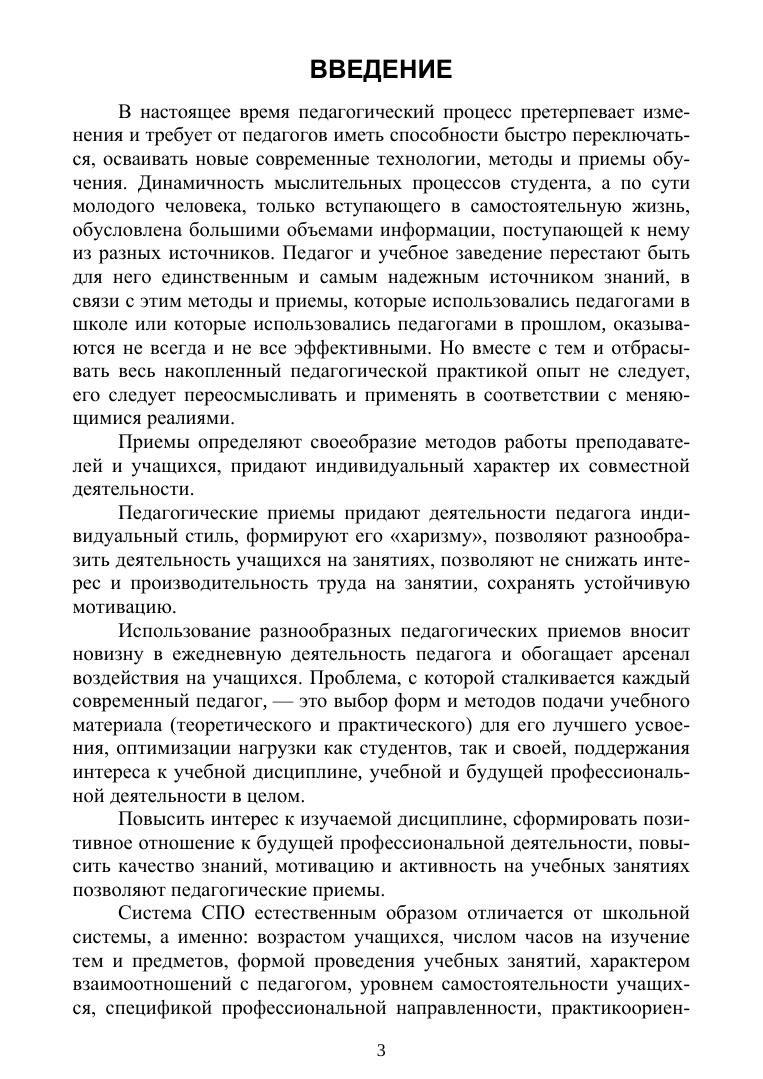 «Методика профессионального обучения» является особо важной дисциплиной в подготовке бакалавров и магистров направления «Профессиональное обучение (по отраслям)». Данное учебное пособие может стать для них и их преподавателей незаменимым инструментом при проведении практических занятий по этой дисциплине. В методической литературе и в Интернете большое количество педагогических приемов, но все они разрозненны. Чтобы найти что-то подходящее для себя, приходится просматривать множество сайтов или перечитывать десятки методичек. Здесь же в одном месте собран и методически структурирован обширнейший арсенал практических педагогических приемов, которые будущие педагоги могут эффективно использовать в своей дальнейшей работе. Пособие предназначено в первую очередь для бакалавров и магистров направления подготовки «Профессиональное обучение (по отраслям)», но будет полезно всем студентам психолого-педагогического профиля в период педагогической практики, а также педагогам системы СПО и преподавателям вузов для организации и индивидуализации собственной педагогической деятельности.