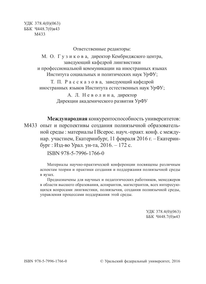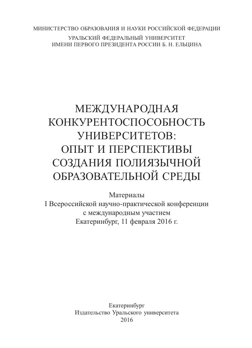 Международная конкурентоспособность университетов: опыт и перспективы создания полиязычной образовательной среды : материалы I Всерос. науч.-практ. конф. с междунар. участием, Екатеринбург, 11 февраля 2016 г.