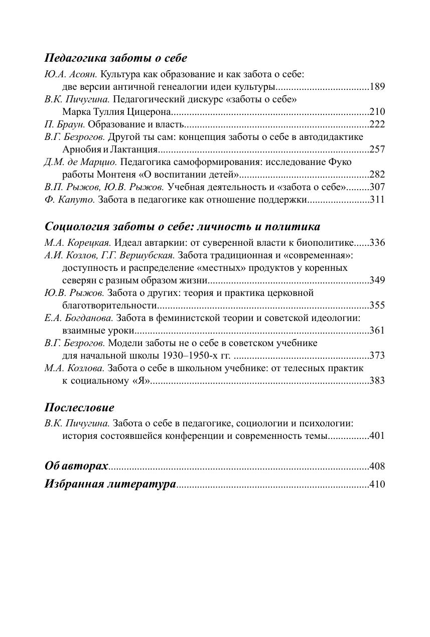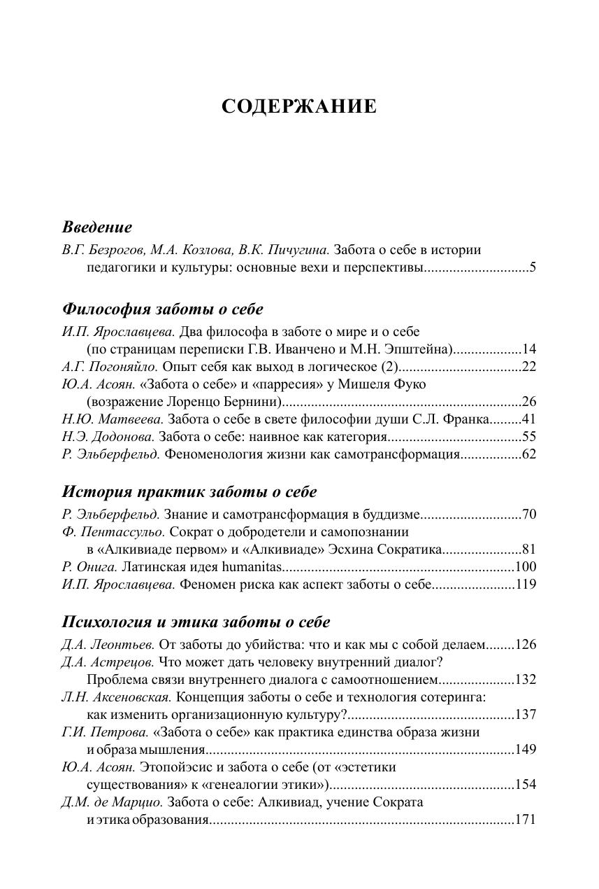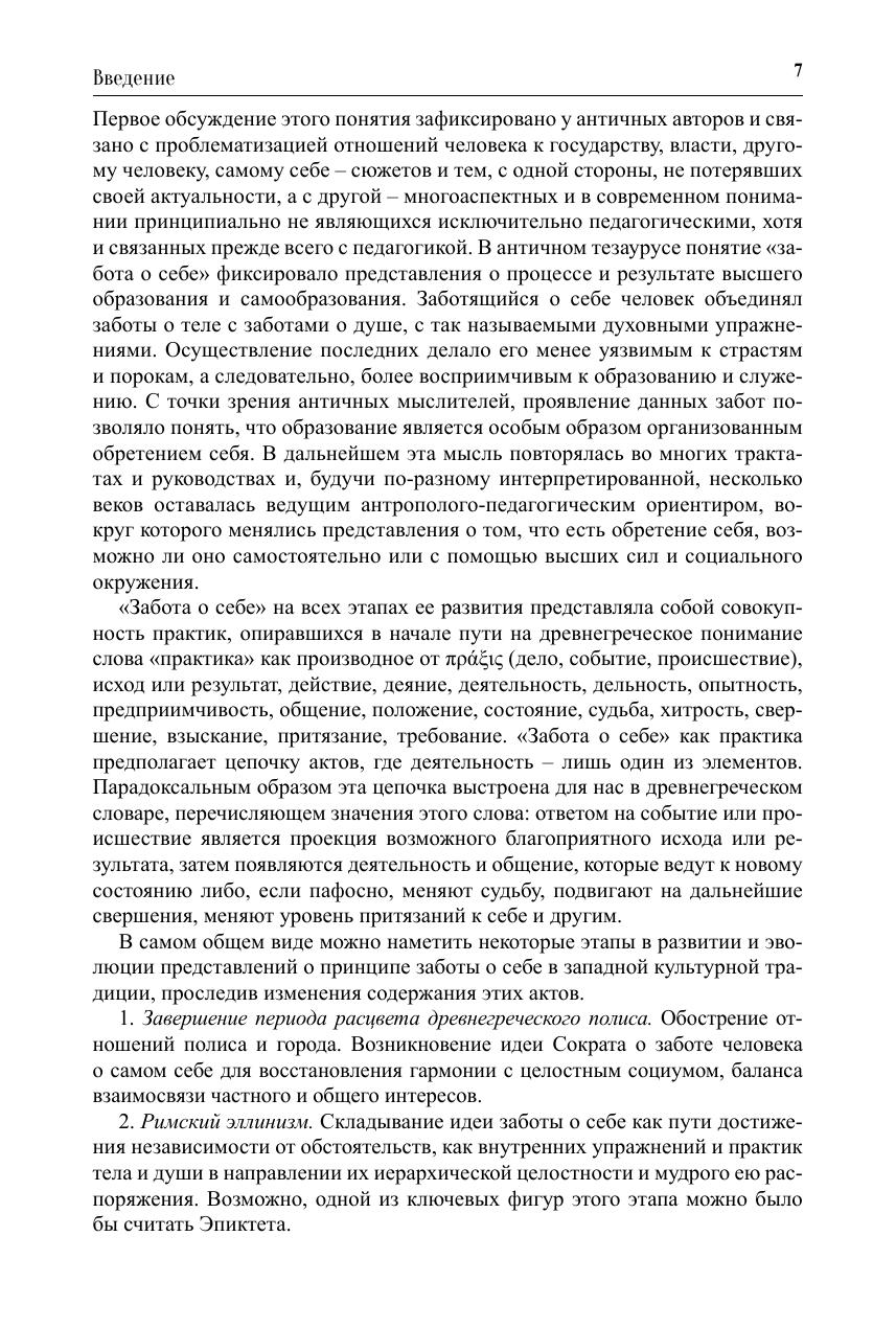 В сборнике освещаются различные аспекты феномена заботы о себе, обсуждается его понимание философией, историей, психологией, педагогикой, социологией, этикой, культурологией, медициной, экологией и другими науками. Рассмотрено общегуманитарное значение идеи заботы о себе в развитии образования, а также в самовоспитании личности, преобразовании и формировании себя как индивида, представителя социума, культуры и профессии. Данное издание завершает трилогию, посвященную междисциплинарной дискуссии вокруг концепции заботы о себе.