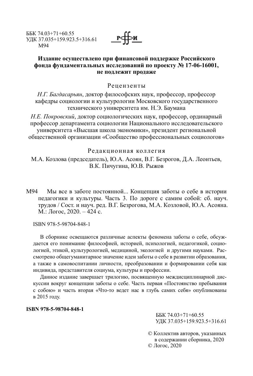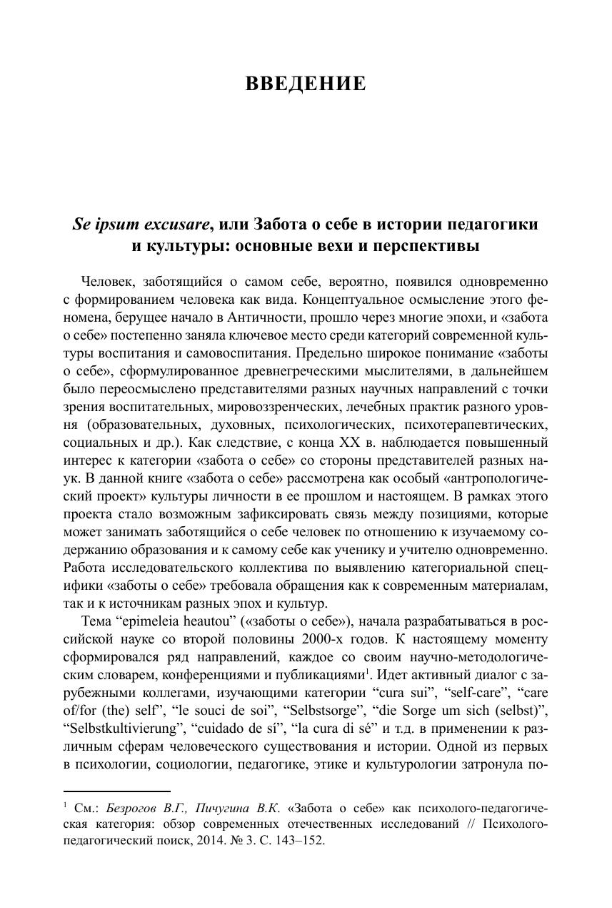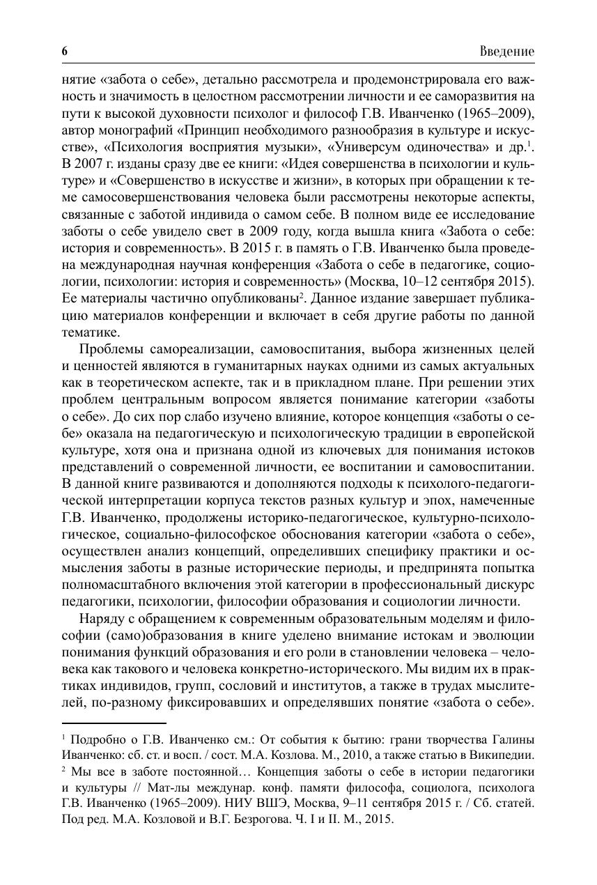 В сборнике освещаются различные аспекты феномена заботы о себе, обсуждается его понимание философией, историей, психологией, педагогикой, социологией, этикой, культурологией, медициной, экологией и другими науками. Рассмотрено общегуманитарное значение идеи заботы о себе в развитии образования, а также в самовоспитании личности, преобразовании и формировании себя как индивида, представителя социума, культуры и профессии. Данное издание завершает трилогию, посвященную междисциплинарной дискуссии вокруг концепции заботы о себе.