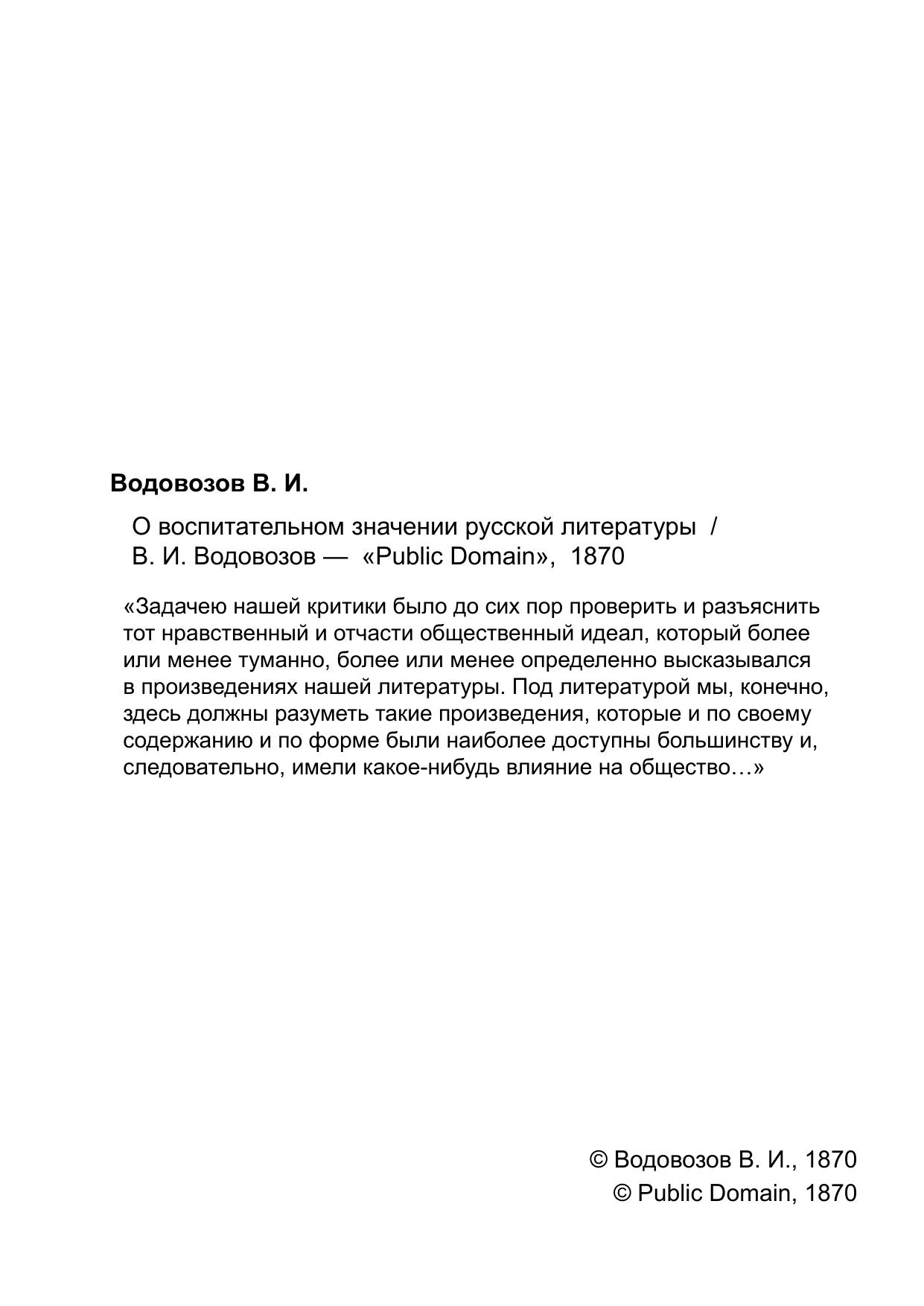 О воспитательном значении русской литературы